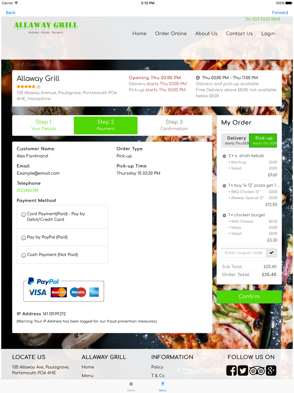 Welcome to our new Allaway Grill App for ordering takeaway or delivery from your iPhone or iPad! (Internet connection is required to use this app)