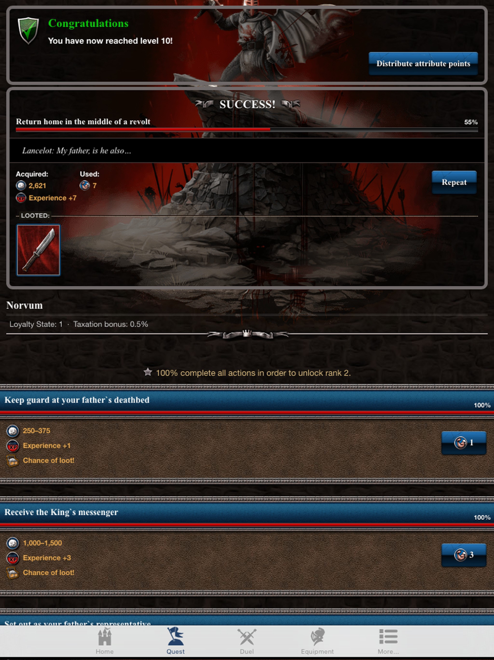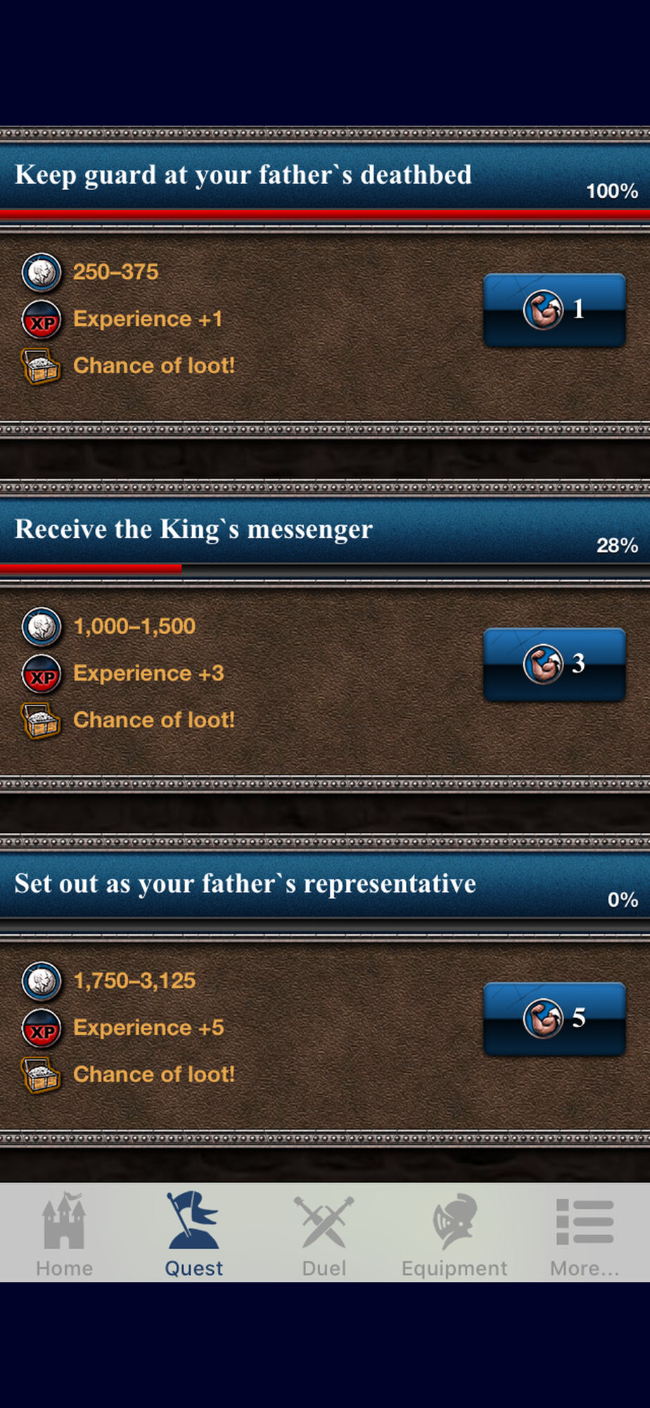 In Knight Game, you rise from the rank of lowly vassal up to royalty. Gather the best equipment and experience and form your own Order of knights. Carefully select your friends and your foes and soon you will scale the highscores and rule over a blooming kingdom.