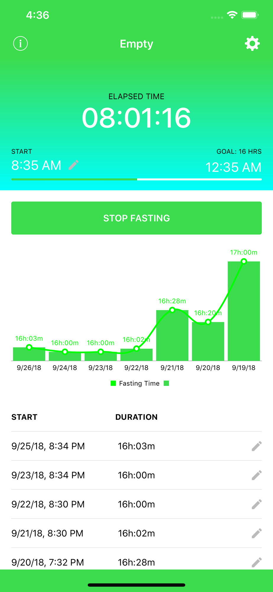 Empty is a simple and intuitive fasting tracker used for Intermittent, Circadian Rhythm, and Custom fasting. Choose your favorite fasting type and Empty will track and remind your ongoing progress.