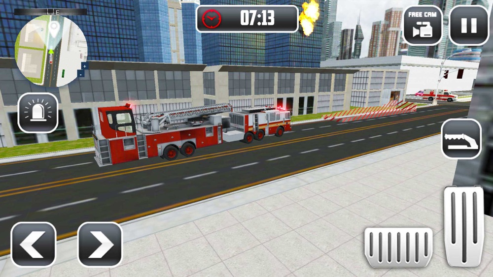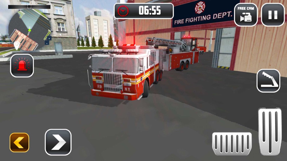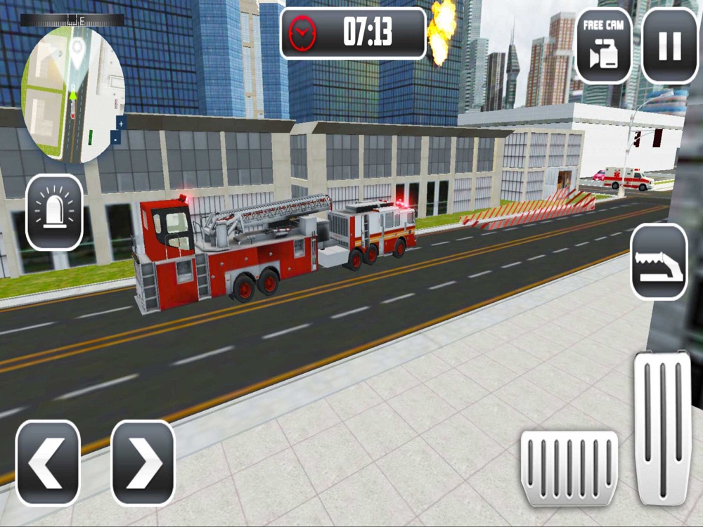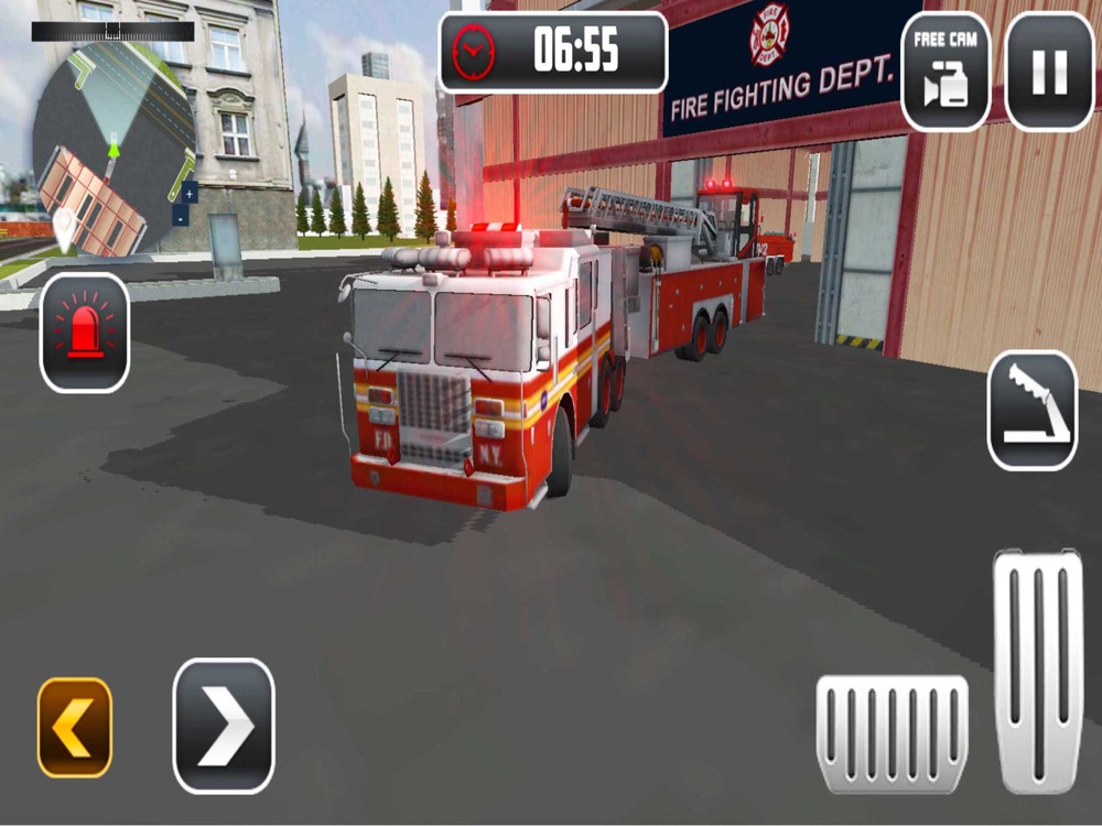 Bombeiro resgata pessoas de situações perigosas, como acidentes de veículos, colapsos estruturais e incêndio. Ligue a sirene 'WEE-OO' e conduza o caminhão de bombeiros para alcançar o destino de emergência de incêndio no mínimo tempo possível! Torne-se um motorista de resgate e trabalhe na estação de bombeiros para salvar cidadãos inocentes. O caminhão de bombeiros moderno está equipado com equipamento de resgate de estado da arte, extintor e uma escada muito grande para alcançar o shopping ou o edifício de vários andares. A escada no caminhão é levantada e abaixada usando uma haste de pistão hidráulica operada a partir do motor de bombeiros.