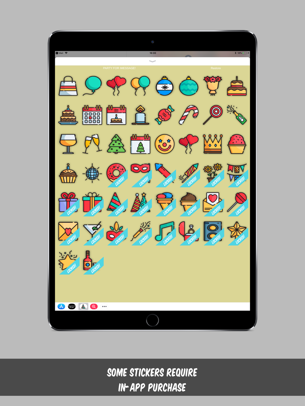 Open the party on iMessage. Get these party stickers and chat with your friends about your upcoming parties!