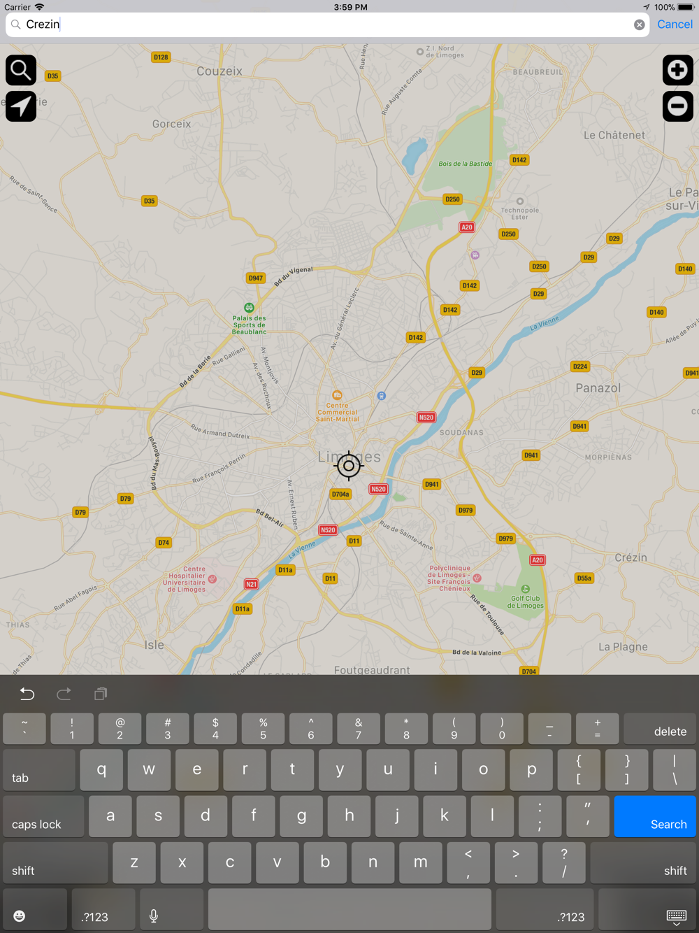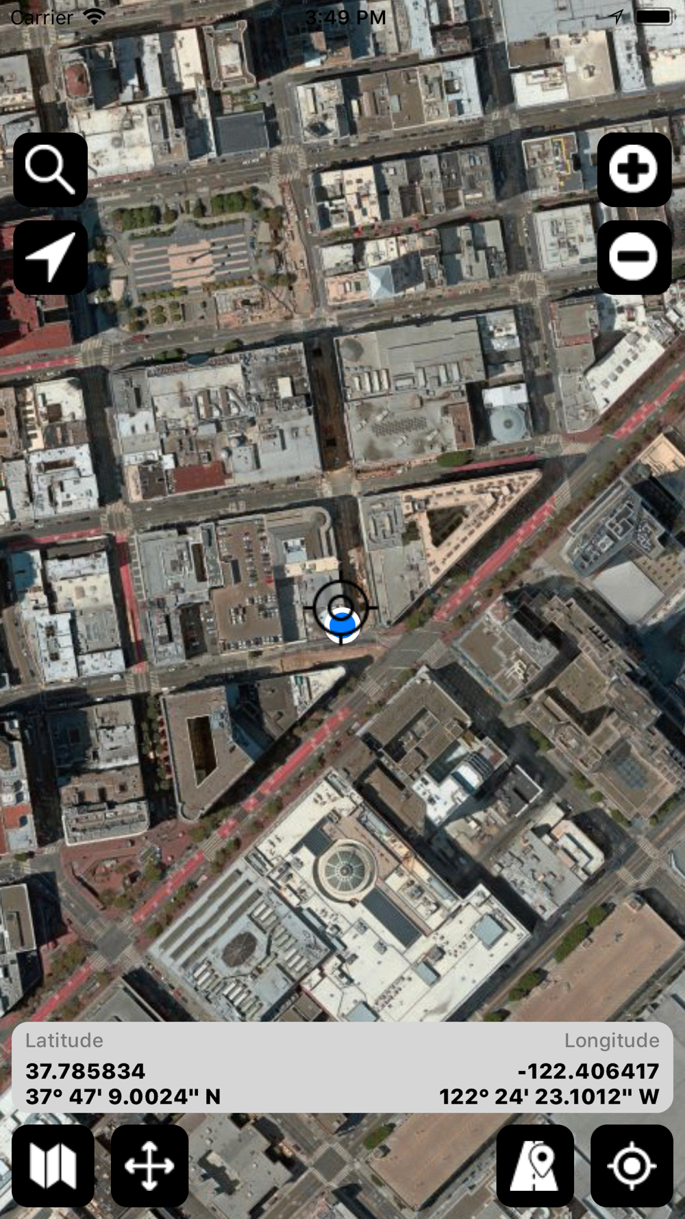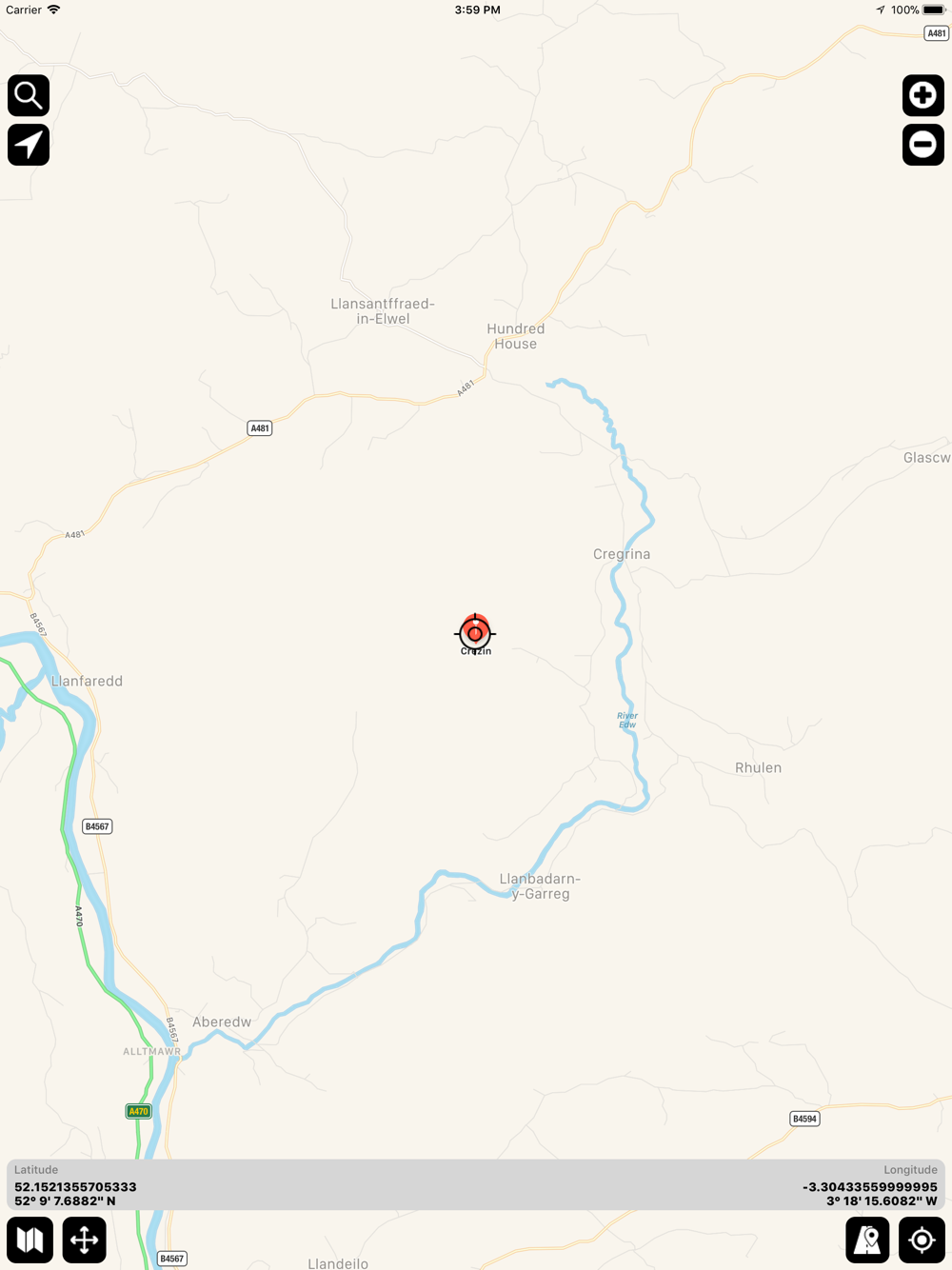 The app has a zoom in and out function along with the standard apple map controls such as pinch to zoom and you can change the map type to standard, satellite or hybrid.