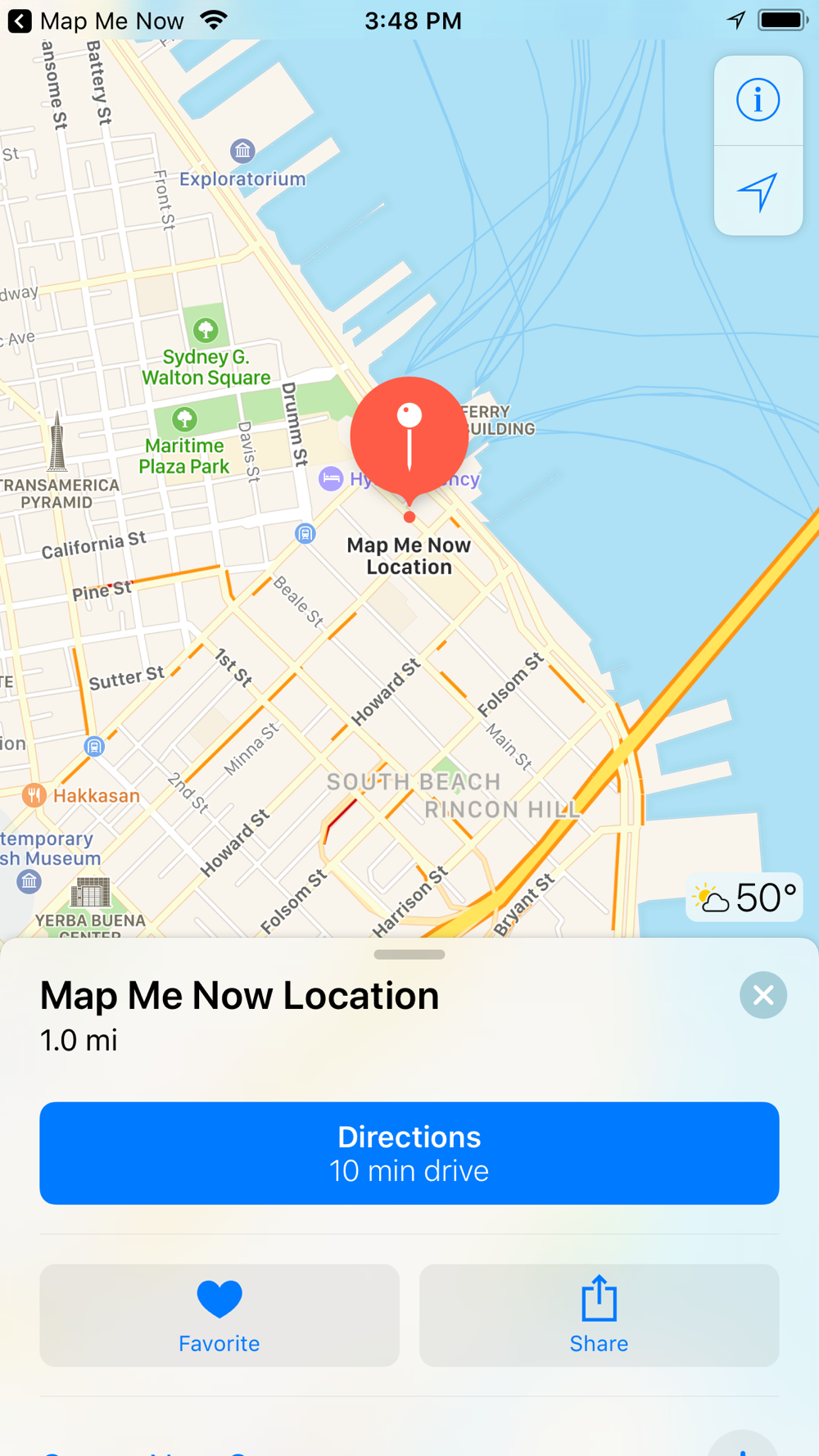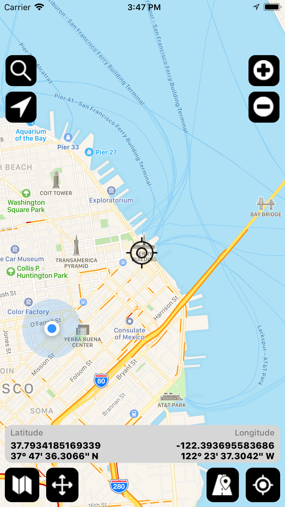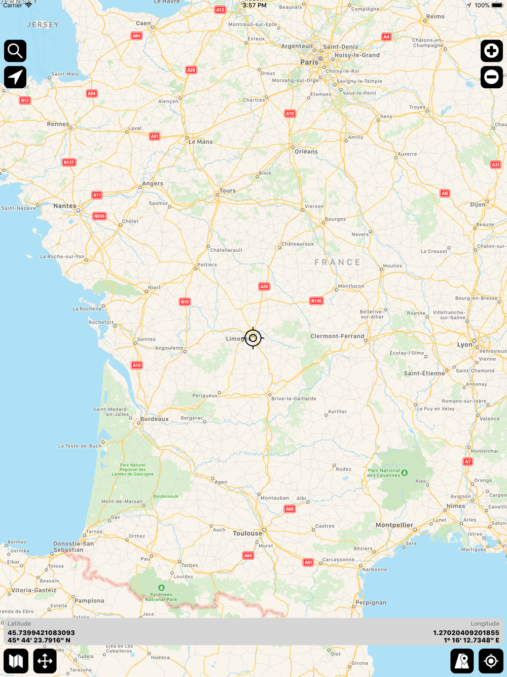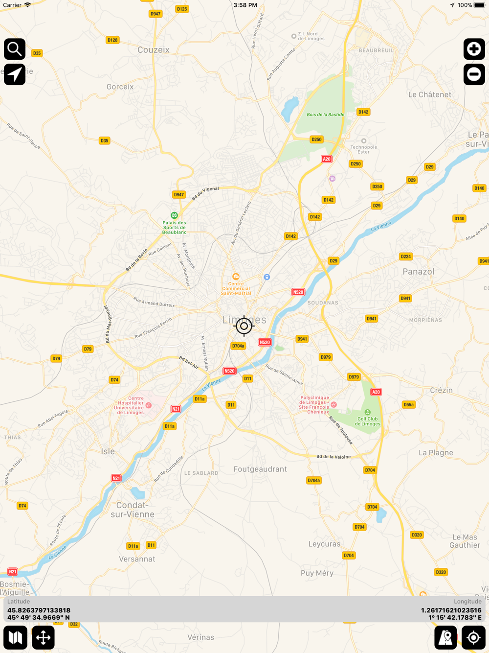 The app has a zoom in and out function along with the standard apple map controls such as pinch to zoom and you can change the map type to standard, satellite or hybrid.