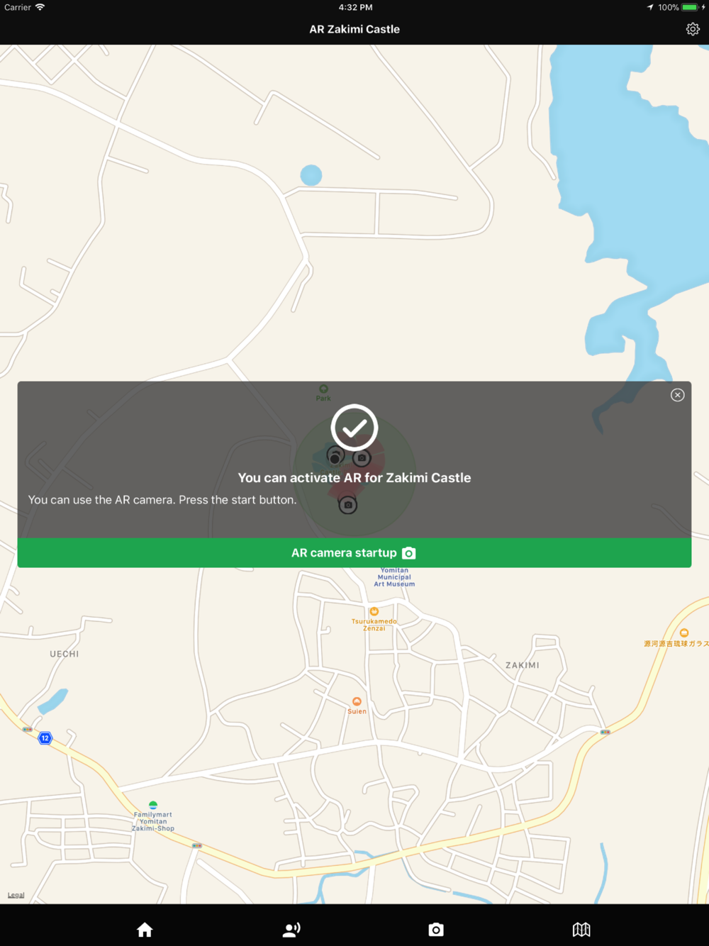 While visiting the Zakimi Castle Site, the AR camera can be activated as you enter the designated area colored in green on the map.