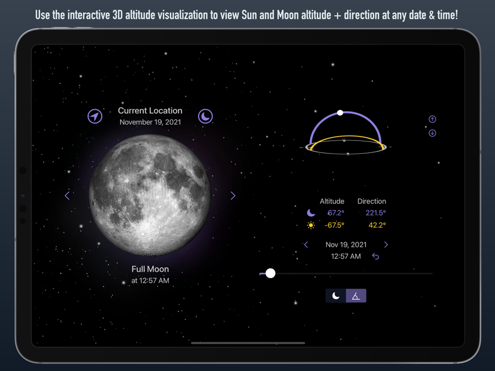 View exact time of the Full Moon and New Moon (from the full moon and new moon chart views).