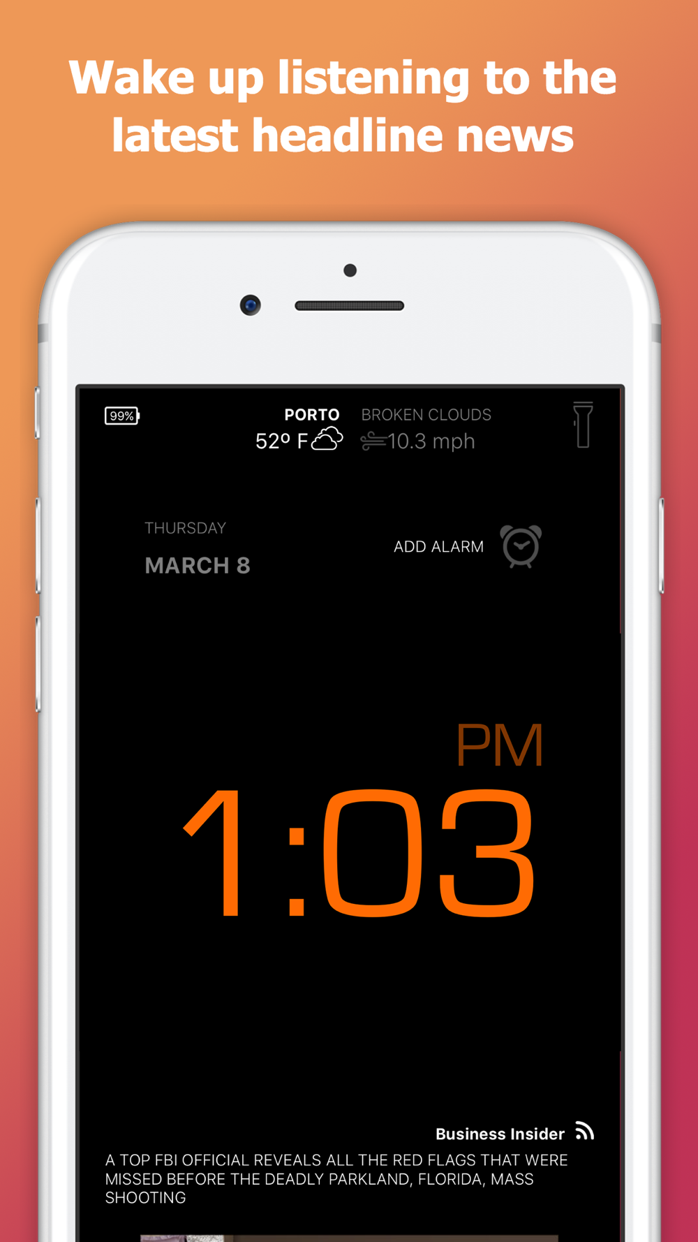 You can simply choose a ringtone, relax music or (with our talking alarm clock) wake up with real time weather information and headline news.