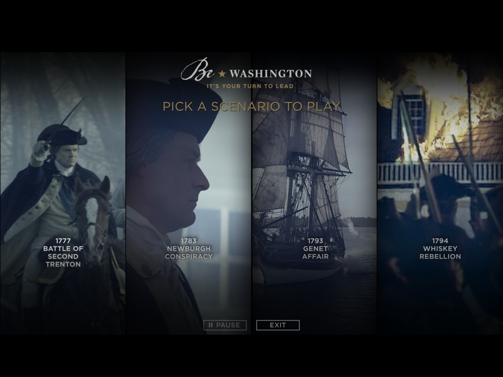 Hosted by Chris Jackson, who played George Washington in the broadway musical Hamilton, players will be introduced to four key decisions Washington had to make: the Battle of Second Trenton, the Newburgh Conspiracy, the Genet Affair, and the Whiskey Rebellion. Hear from those who would have advised Washington, rate their persuasiveness, then make your decision and see if you would have lead like Washington.