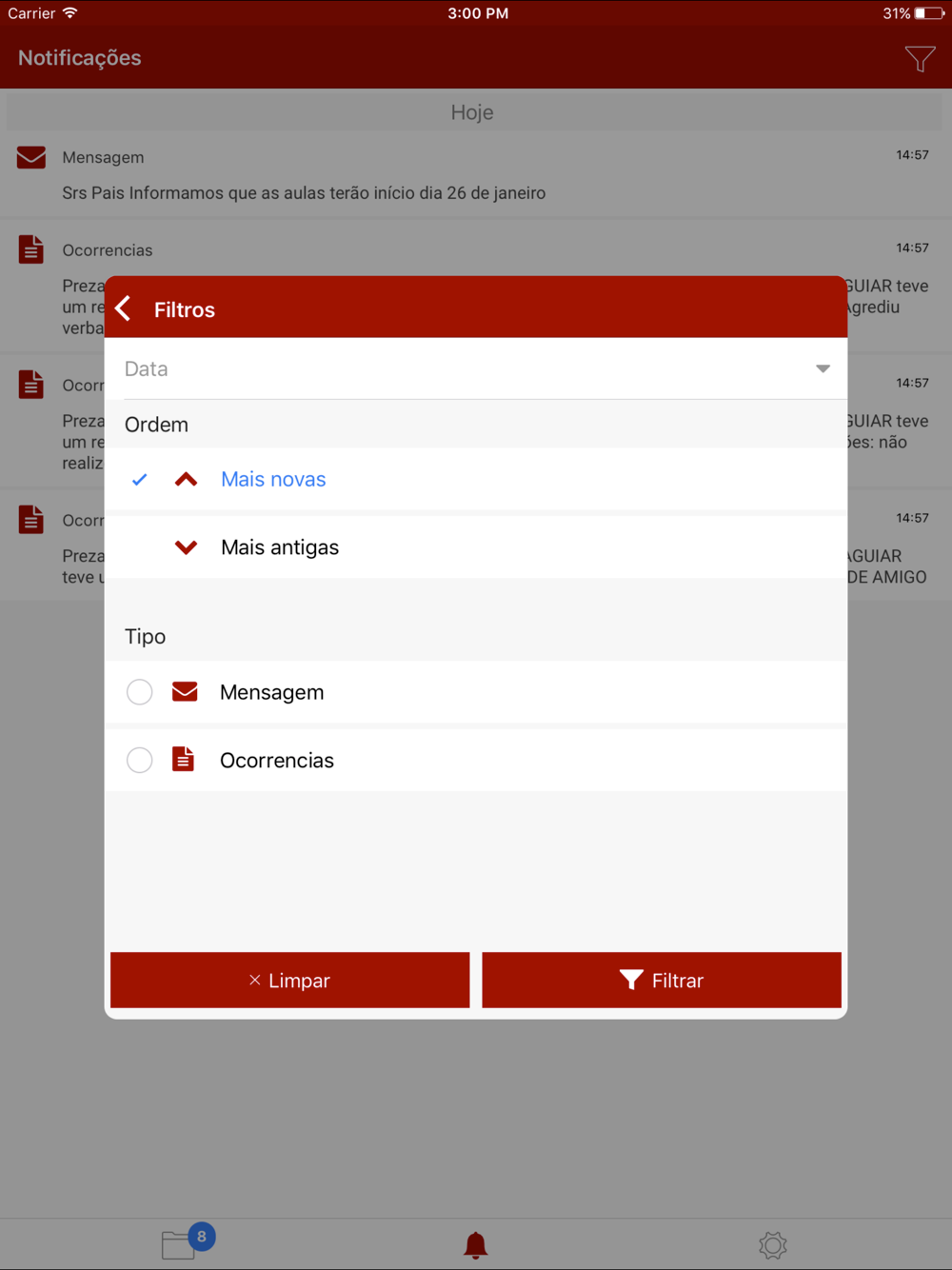 Avisos, ocorrências escolares, declaração de pagamentos, enfim...