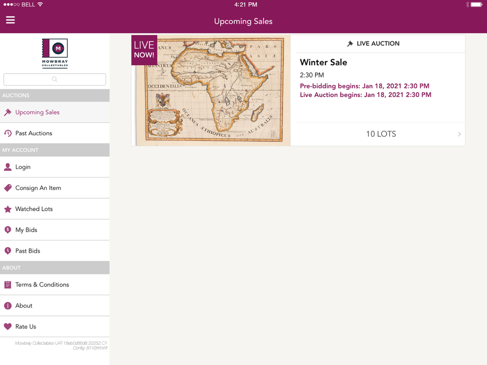 With the MowbrayCollectables app you can preview, watch, and bid in our auctions all from your mobile phone. Participate in our sales while on the go or at your leisure from your mobile device and gain access these features: