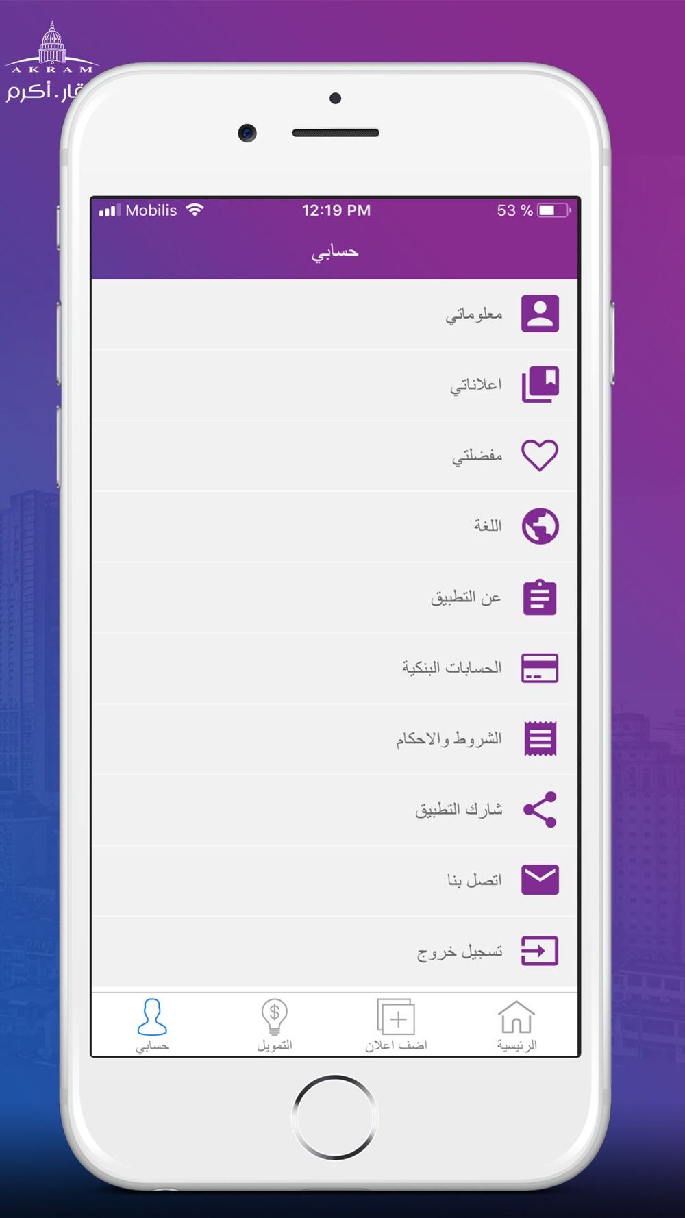 تطبيق عقار أكرم يوفر خدمة عقارية على مدار الساعة في مجموعة من الدول حيث يتم عرض الإعلانات العقارية بغرض البيع او الايجار مع مجموعة من الخيارات والاقسام مثل الفلل، الشقق، الشليهات، العمائر، الاستراحات و الاراضي و غيرها...هدفنا تقديم افضل خدمة بأفضل مواصفات و توفير أفضل فرص العثور على العقار المناسب في الوقت و المكان المناسب و خاصة بالسعر المناسب.