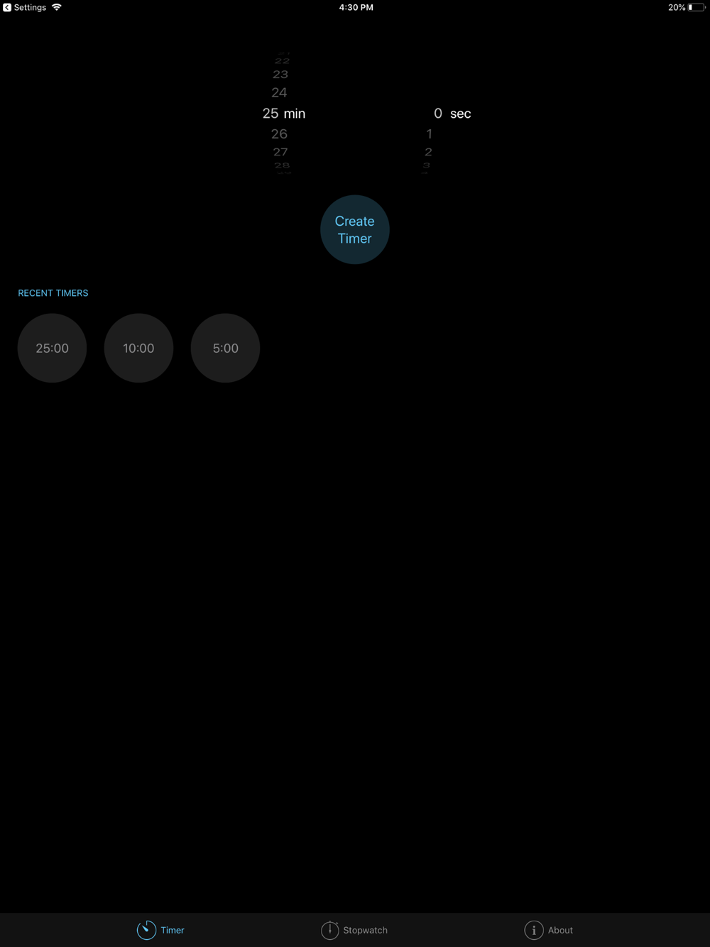 Pop Out Timer uses picture-in-picture to provide an always on-screen, floating timer or stopwatch. Great for presentations, talks, or anything that needs to be timed while using a full screen app.