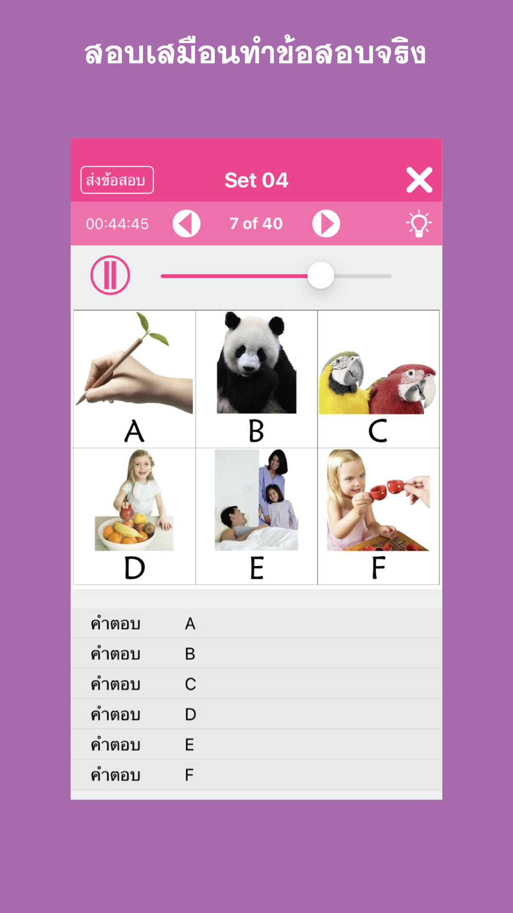 • มีเสียงและภาพ แสดงตามข้อสอบจริง