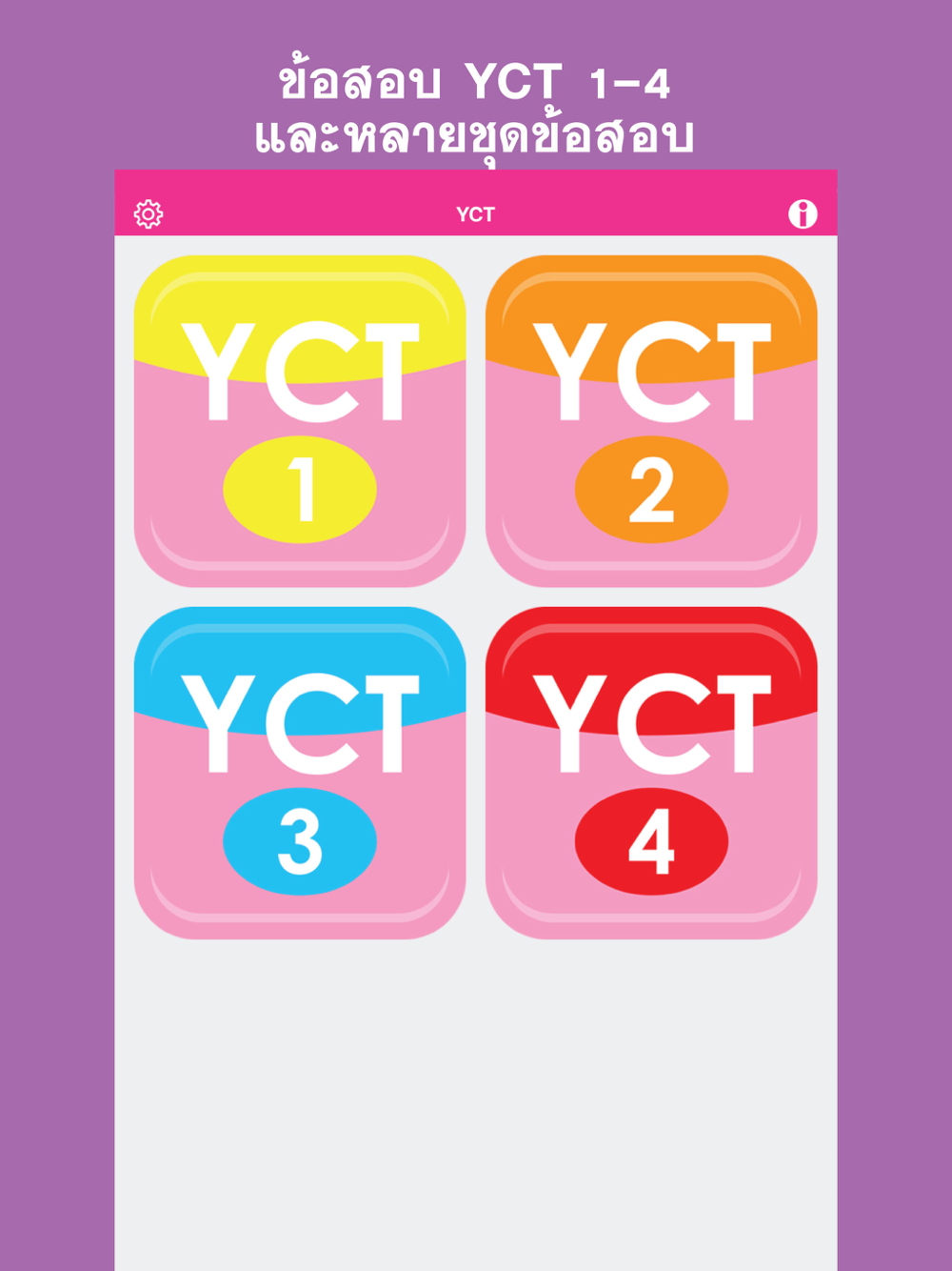 Daxiang Test – YCT เป็นแอพพลิเคชั่นที่สามารถให้คุณฝึกทำข้อสอบจริงของ YCT ภายในแอพพลิเคชั่นคุณสามารถฝึกทักษะในการฟัง การอ่านและการตอบคำถามจากข้อสอบจริง ได้ทุกที่ ทุกเวลา บนโทรศัพท์มือถือหรือแท็บเล็ต
