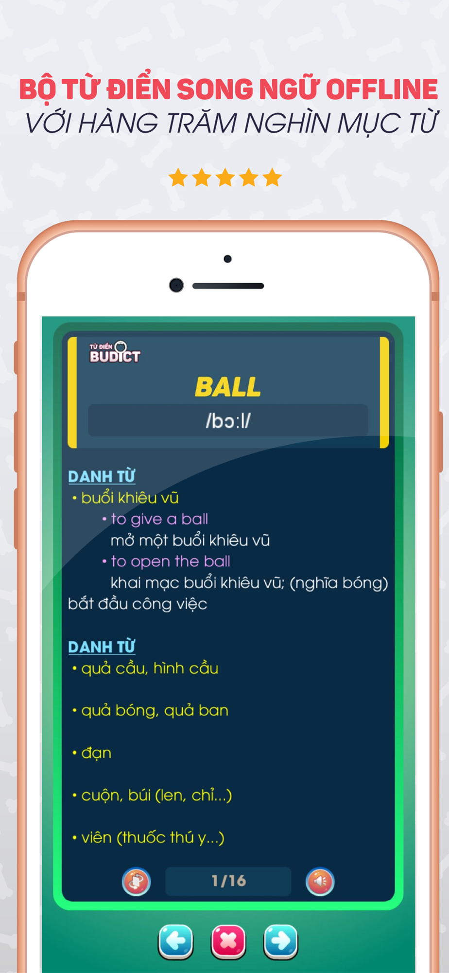 - Đầy đủ thông tin nghĩa, giải thích, phiên âm, phát âm