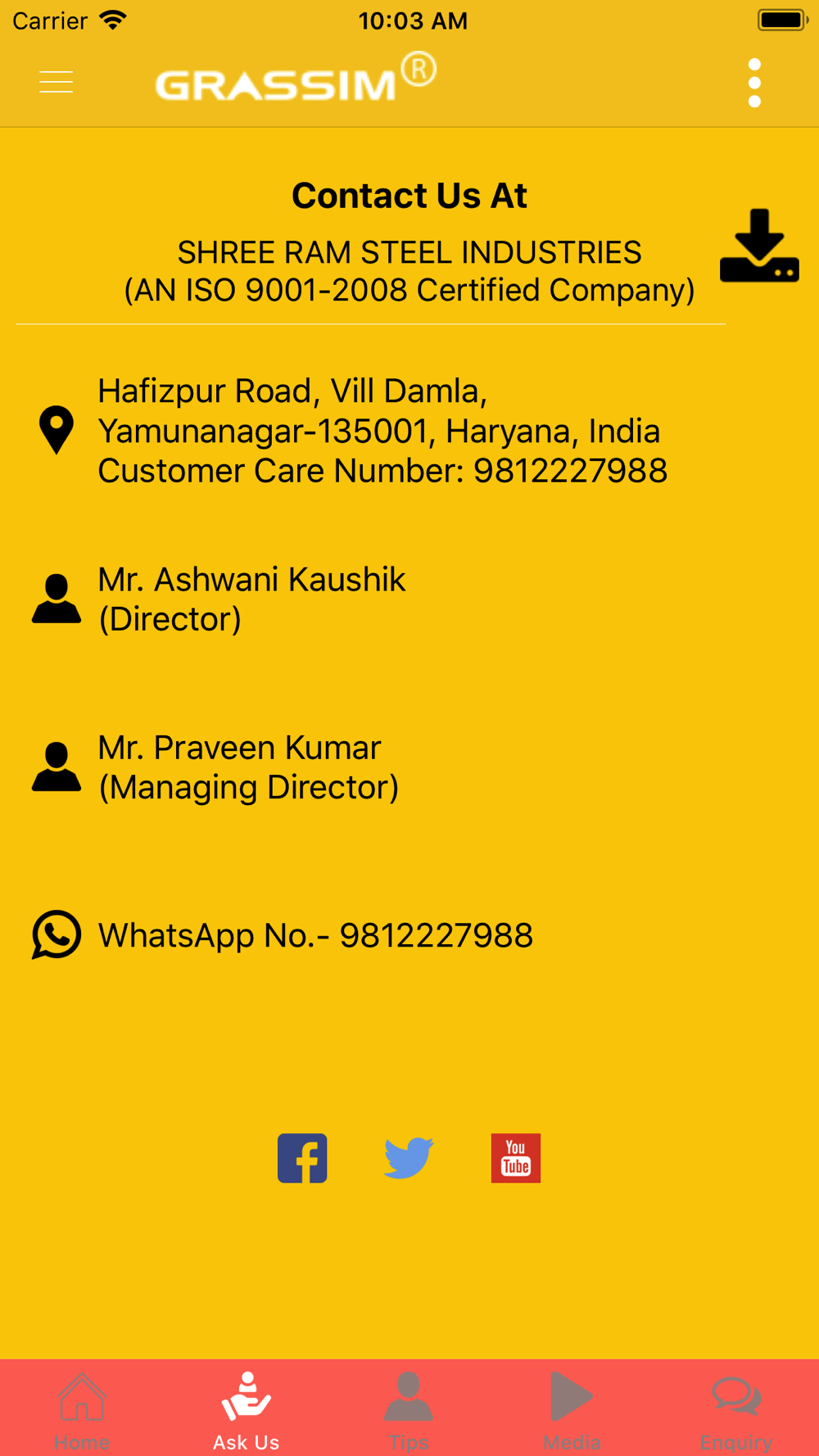 App is basically designed for getting Information about the Company Grassim Plywood Which is situated in Yamuna nagar...