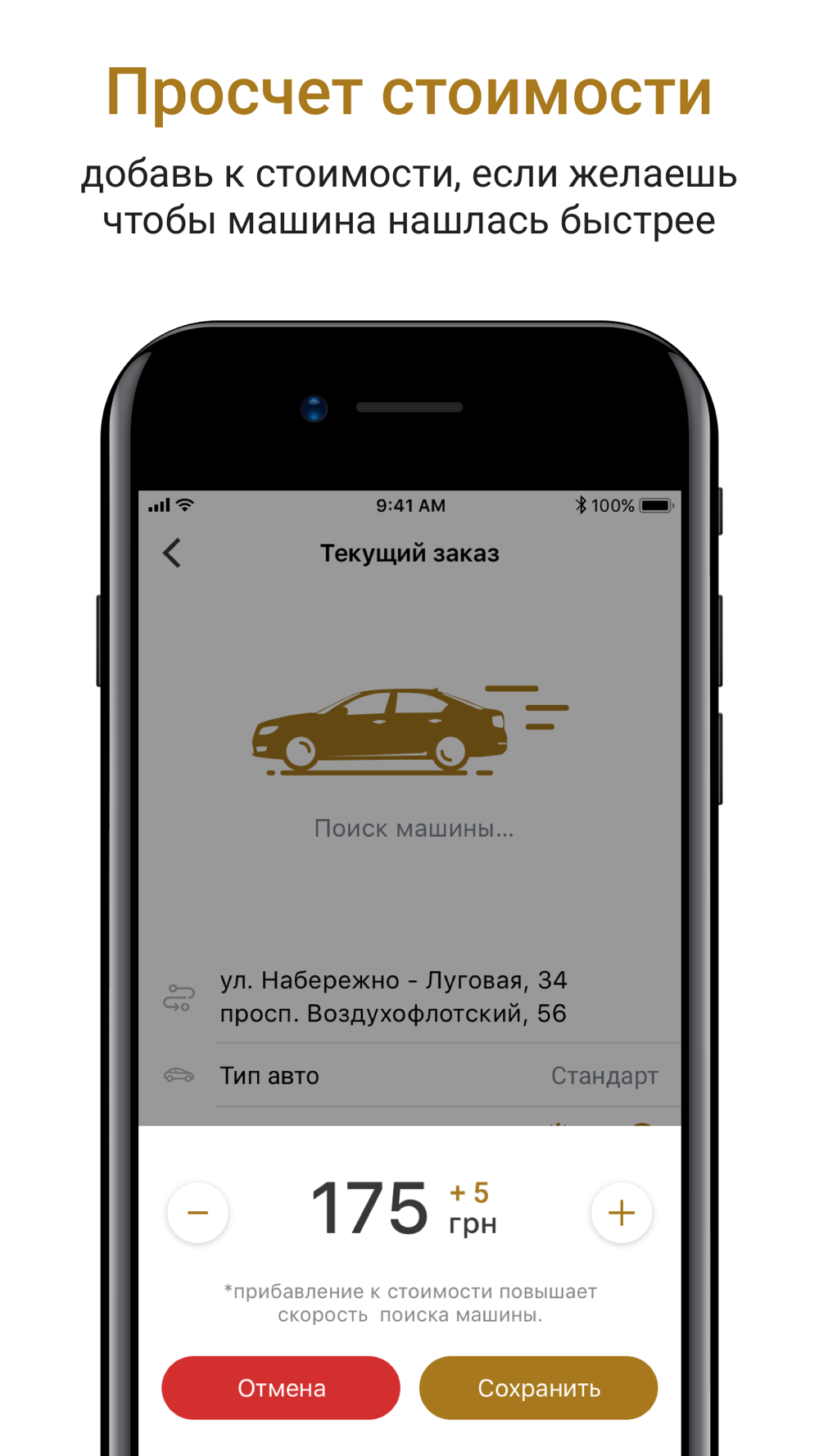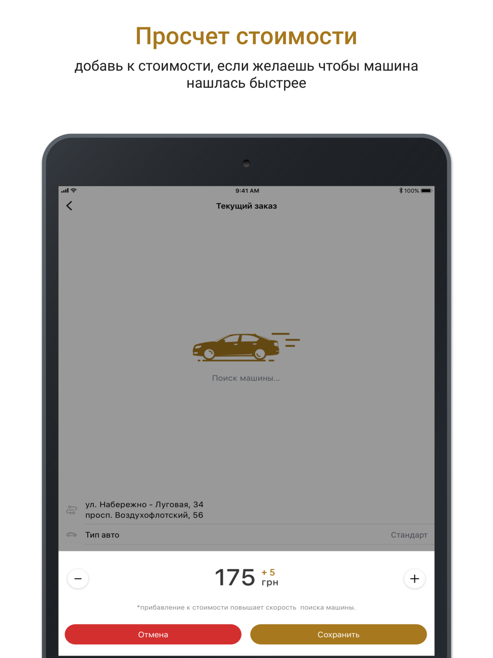 - добавление стоимости к заказу - для более быстрого поиска машины, вы можете немного увеличить стоимость поездки