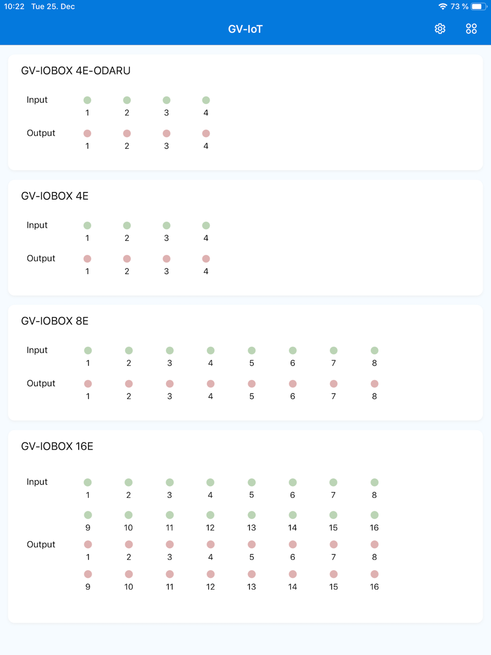 Once connected with GV-I/O Box 4E/8E/16E, you can use GV-IoT mobile app to define the input and output pins and trigger output devices remotely.