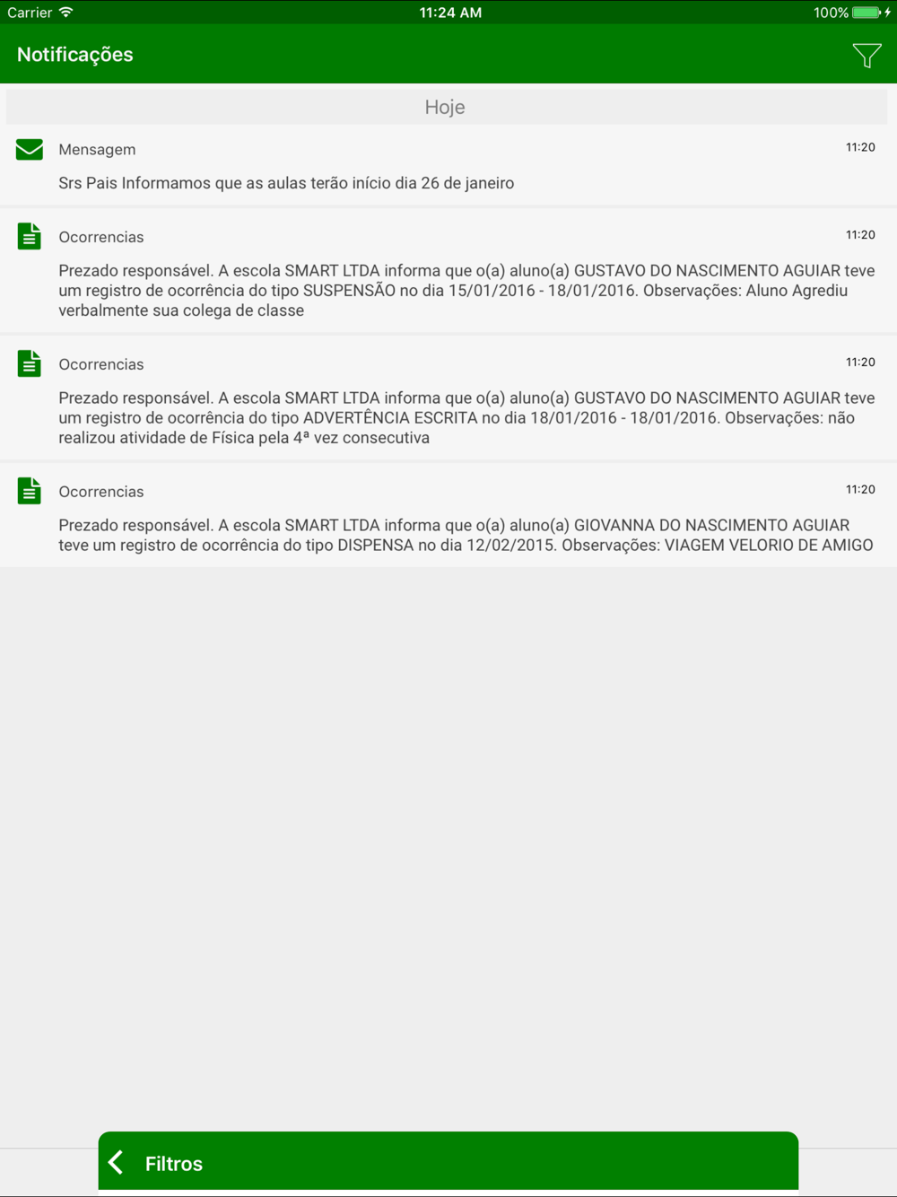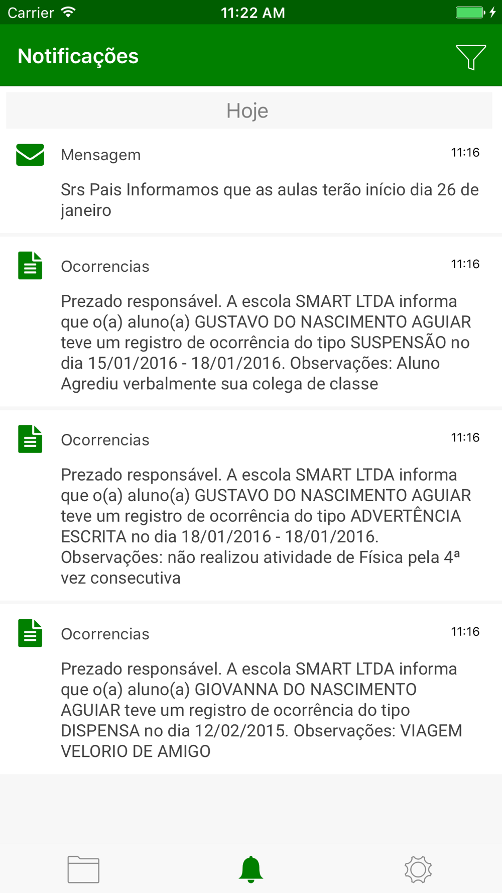 Avisos, ocorrências escolares, declaração de pagamentos, enfim....