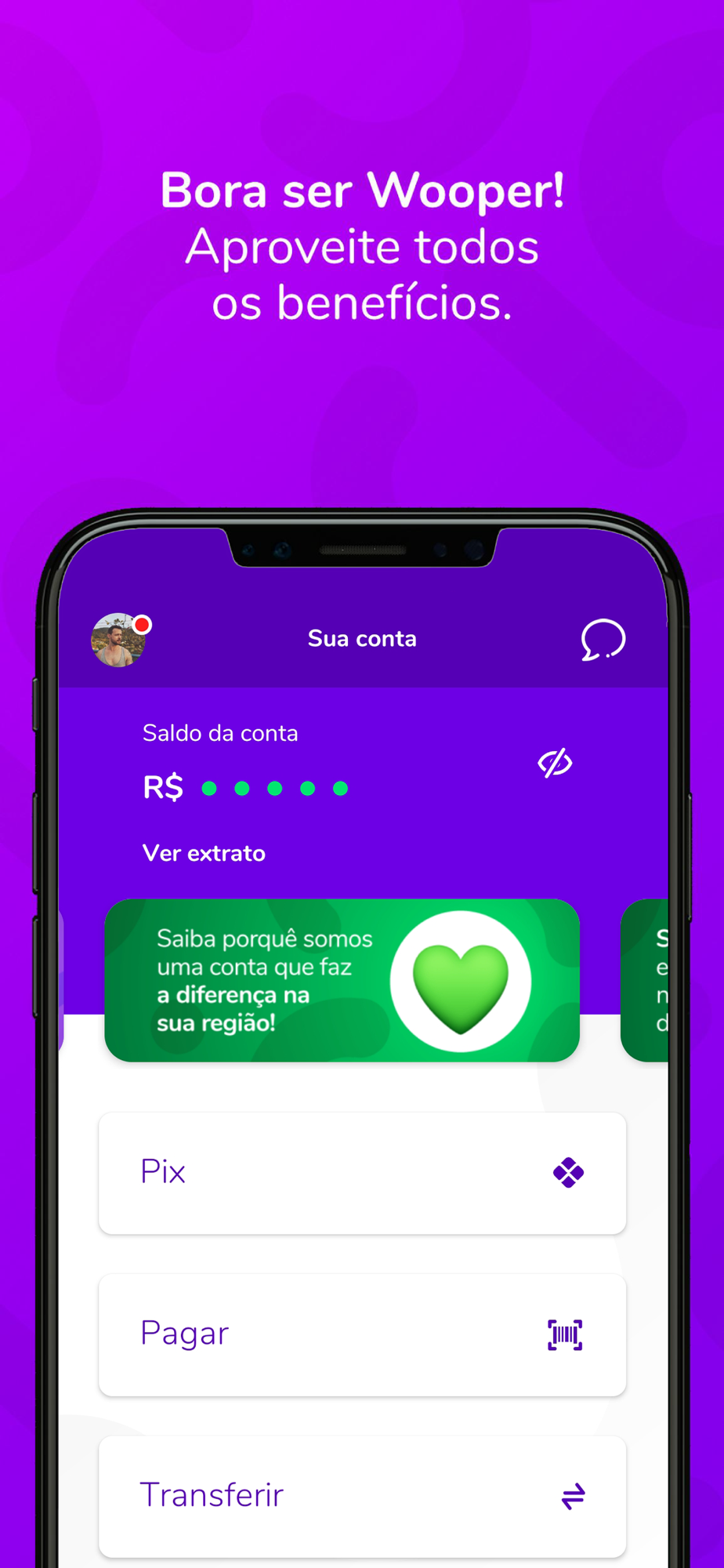Traga seu salário para a conta Woop e receba em sua conta digital! Assim, é mais fácil pagar contas, fazer transferência Pix ou TED, realizar saques e pagar a sua fatura!