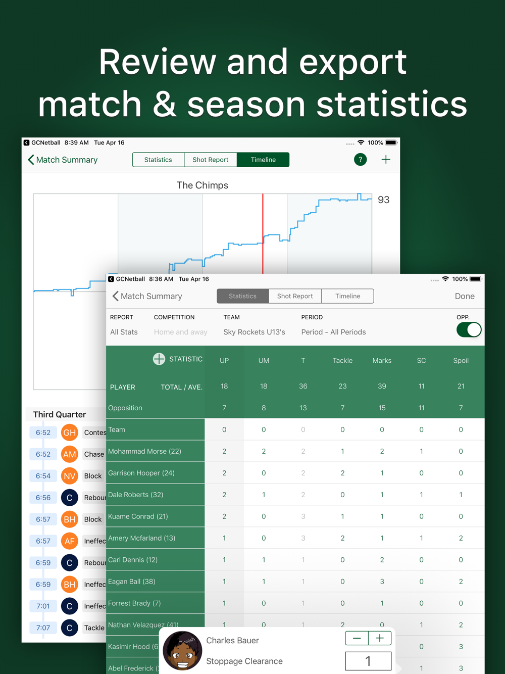 • Customisable statistics location screens - visualise where goals are being scored, where turnovers are happening
