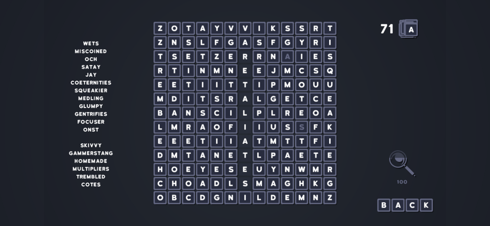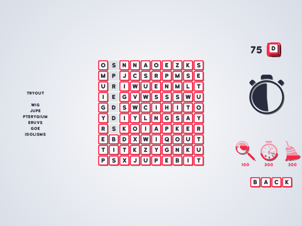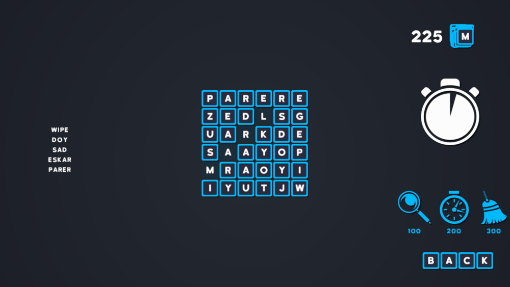 Rosette and Words is a crossword game puzzle where you must find words in a board full of letter tiles. On each level, you are provided with a list of words to find in a specific amount of time.