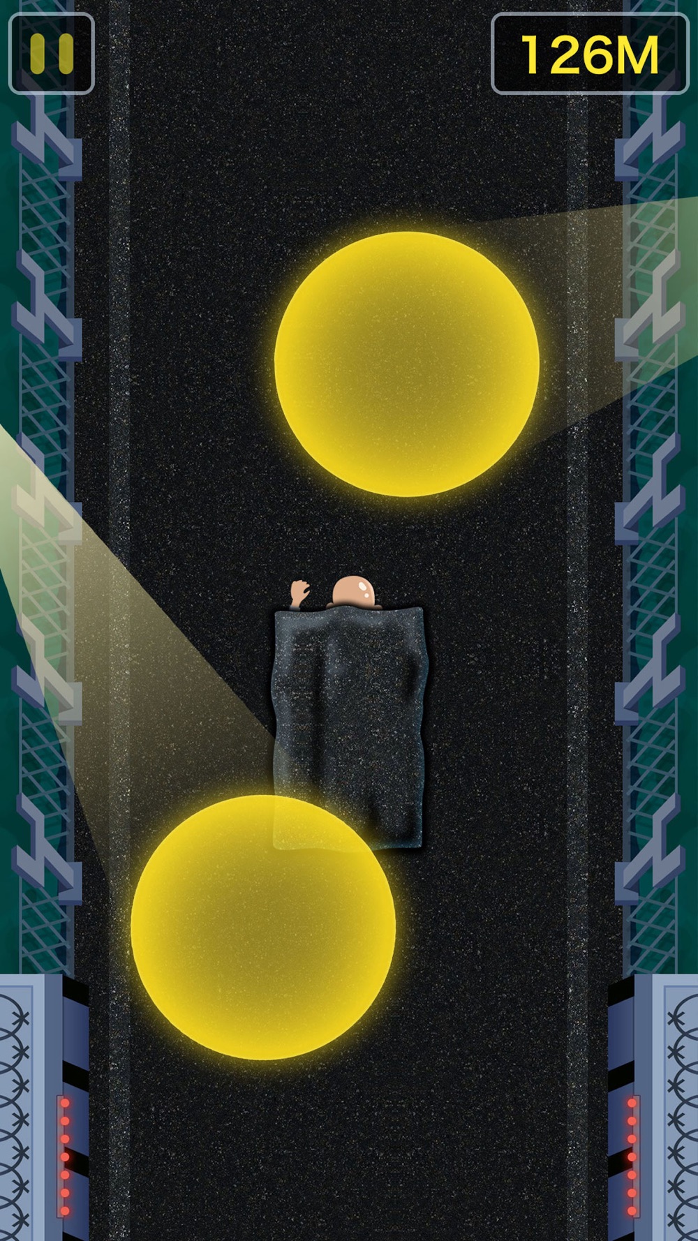 Press and hold the screen to hide. If you are exposed under the searchlight with no hiding, you're going to be under arrest.