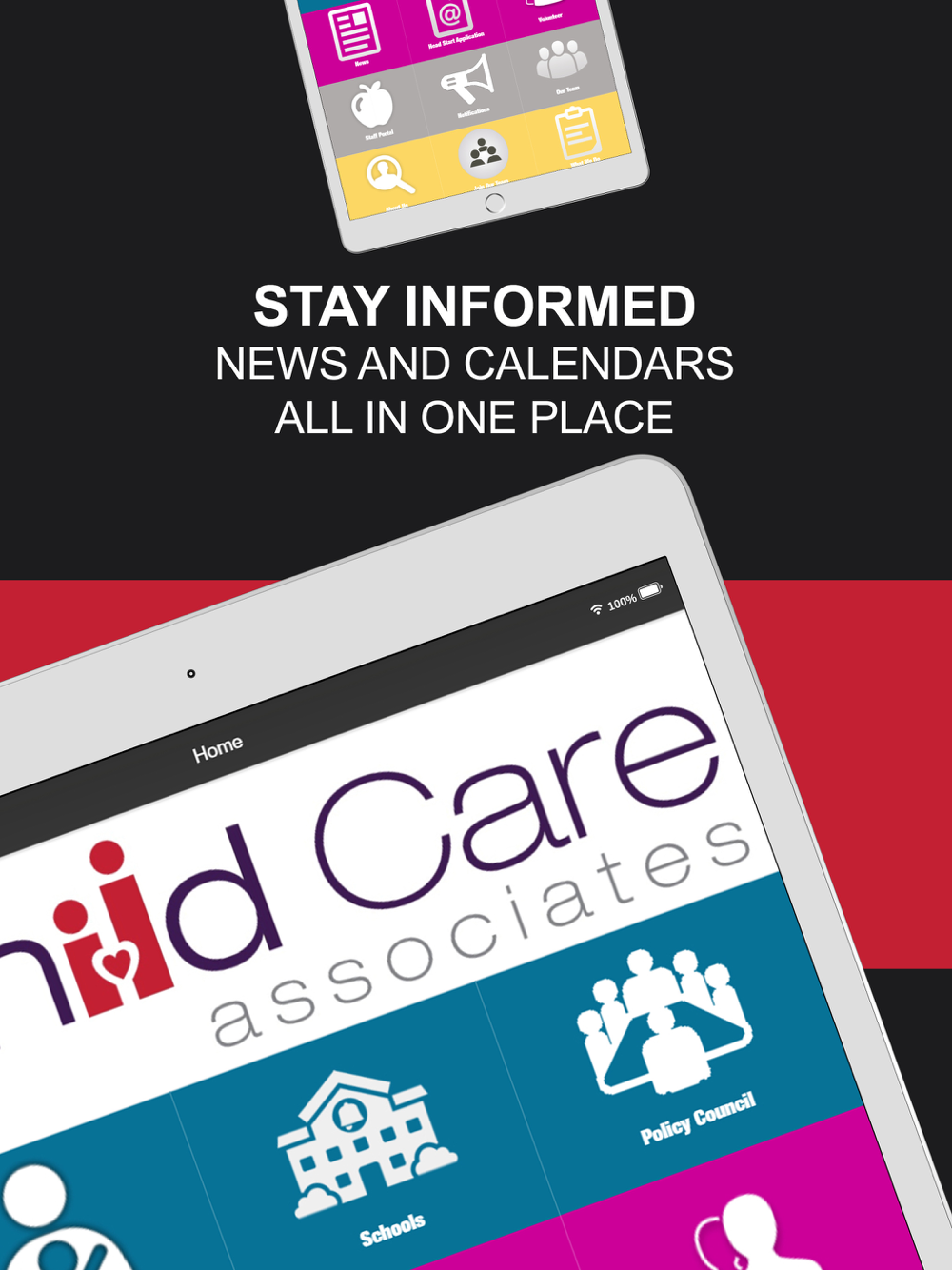 With the Child Care Associates mobile app, your school district comes alive with the touch of a button. Easily navigate through current news and events or check out the latest updates with social media like Facebook and Twitter. Quickly retrieve contact information, sporting scores, lunch menus, and more! It’s your school district available at your fingertips.