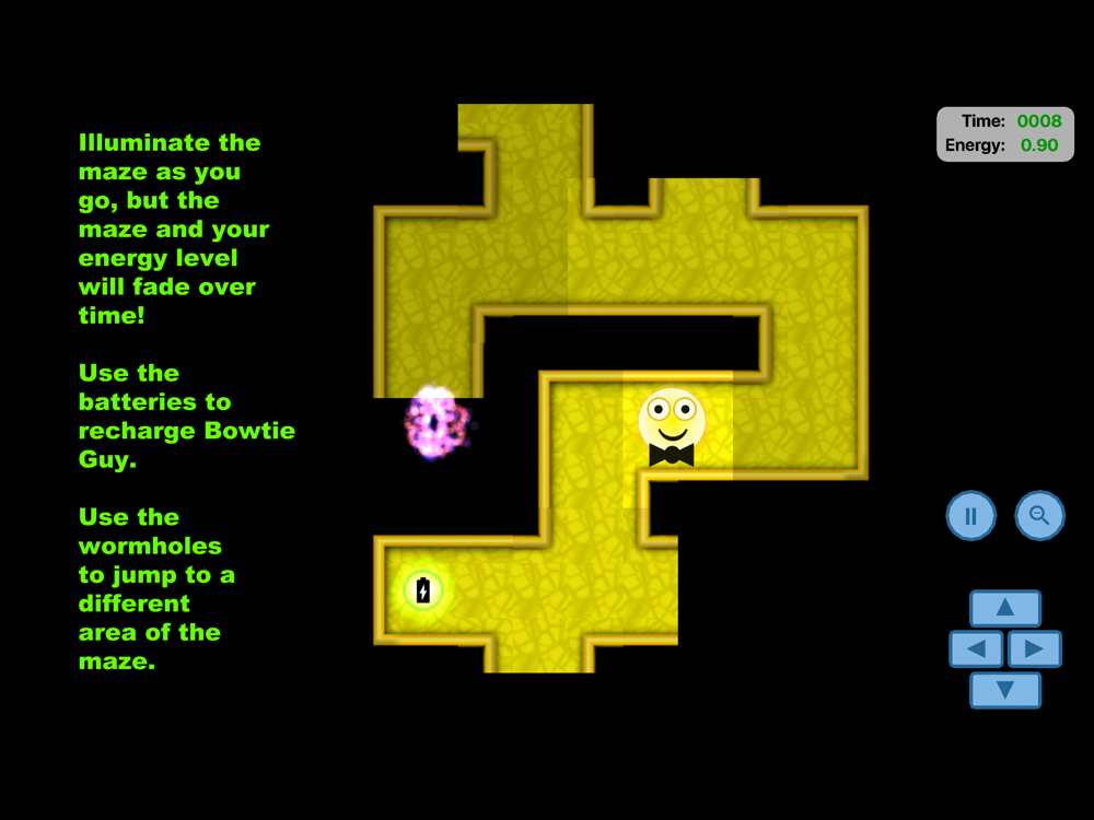 But, he won't be smiling for long unless you can navigate through the dark maze, illuminating it as you go. Find the way out before the maze’s illumination fades and your Bowtie Guy loses his energy.