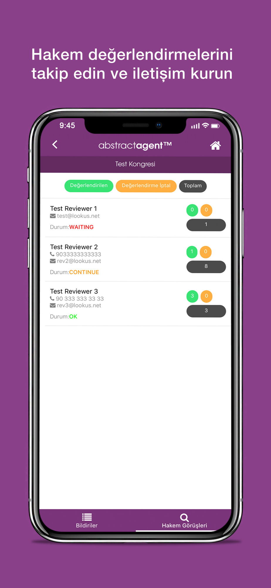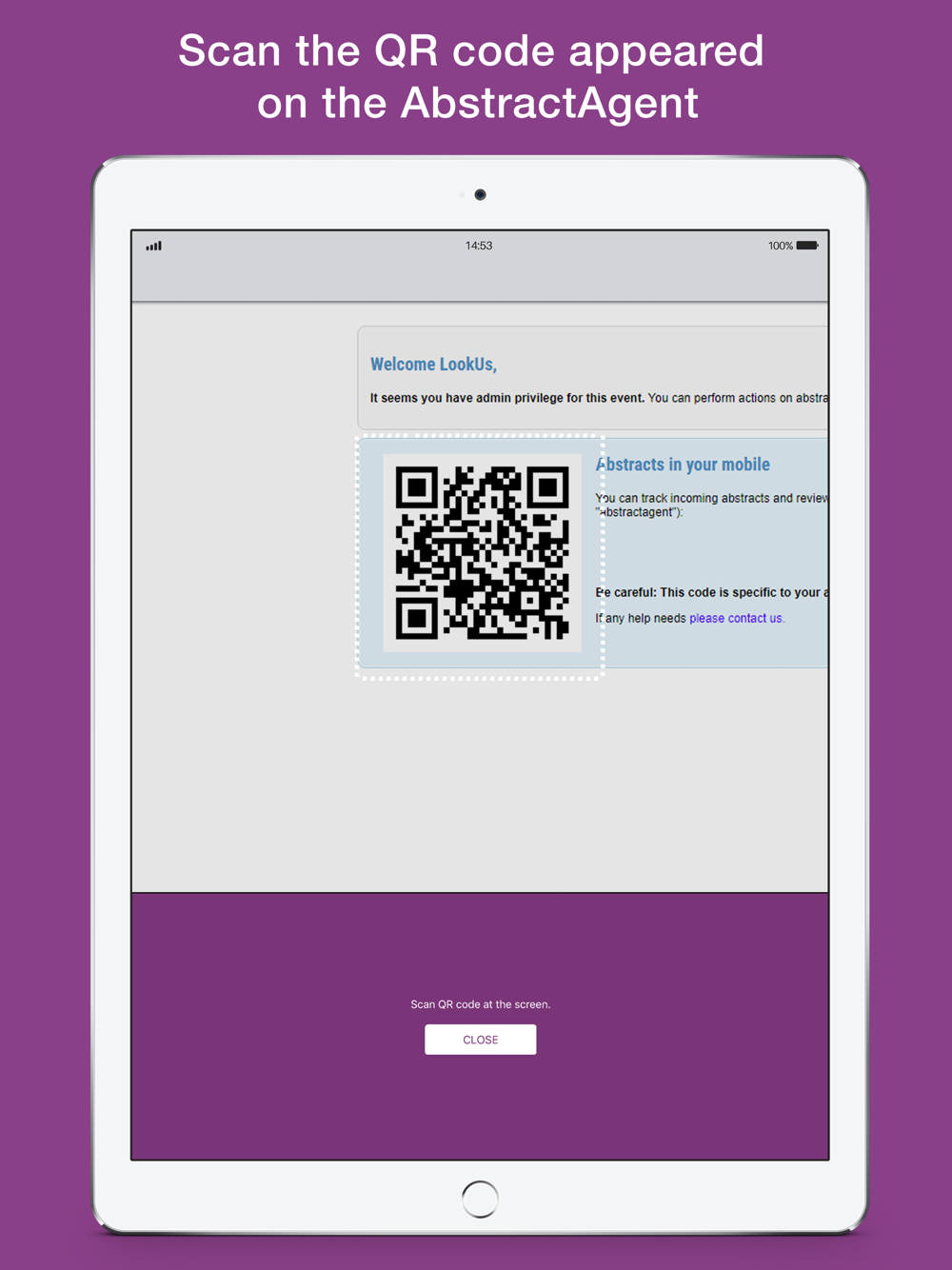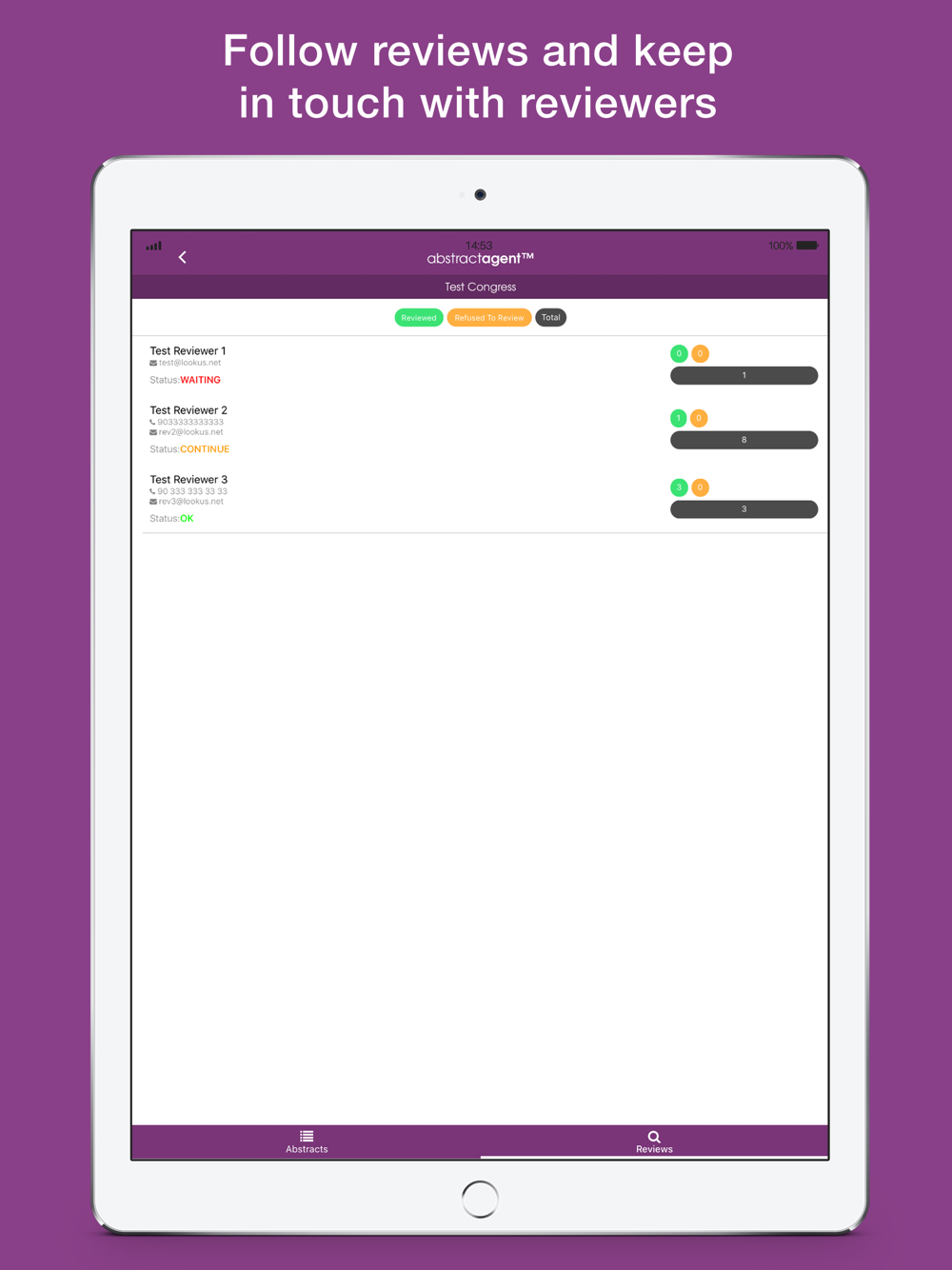 Just scan QR code and connect AbstractAgent which your favorite abstract management system on your mobile now. Inquiry how many abstract submitted and last situation in your each events. Additionally track review process and contact easily with reviewers.
