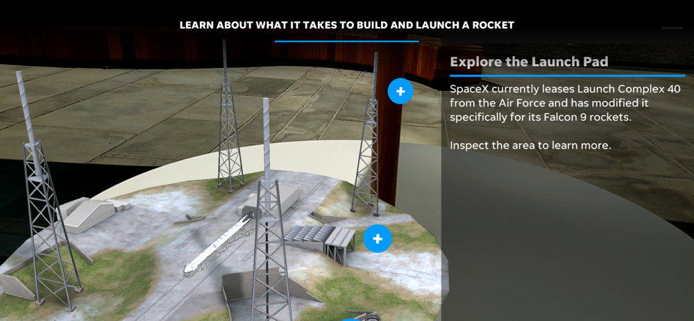 Also check out our launch simulation as space experts guide you through an interactive rocket assembly, readying the launch-pad, and blasting off towards the exosphere, before separation and re-entry. You control a launch mission in this interactive AR experience, and learn what it takes to launch a rocket from Kennedy Space Center.