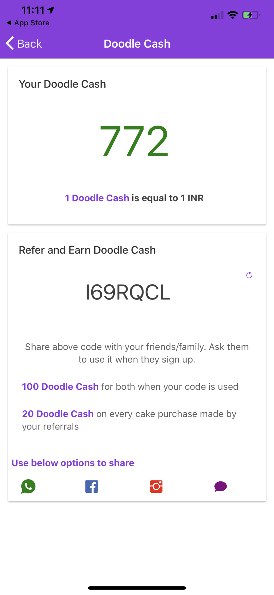 6. Doodle Cash on every purchase and referral. This can be used to purchase cakes for free