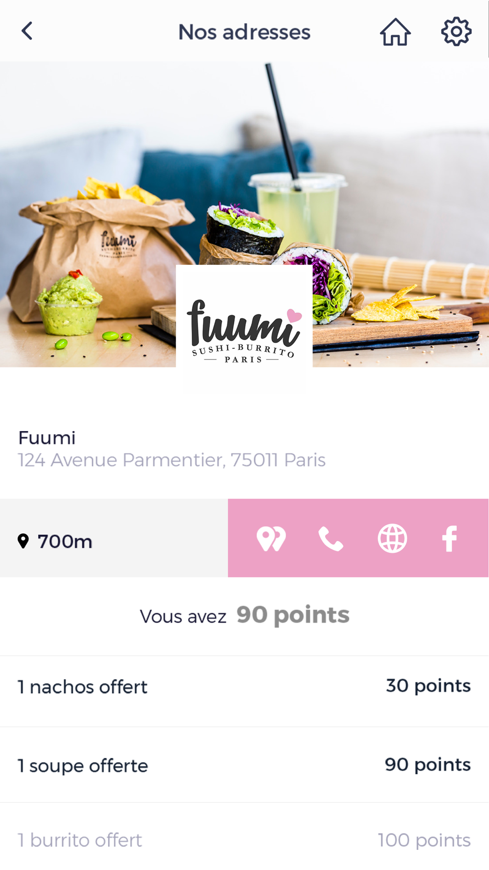 Cumulez vos points de fidélité directement sur votre téléphone, commandez en ligne, et soyez averti des bons plans de vos restaurants Fuumi !