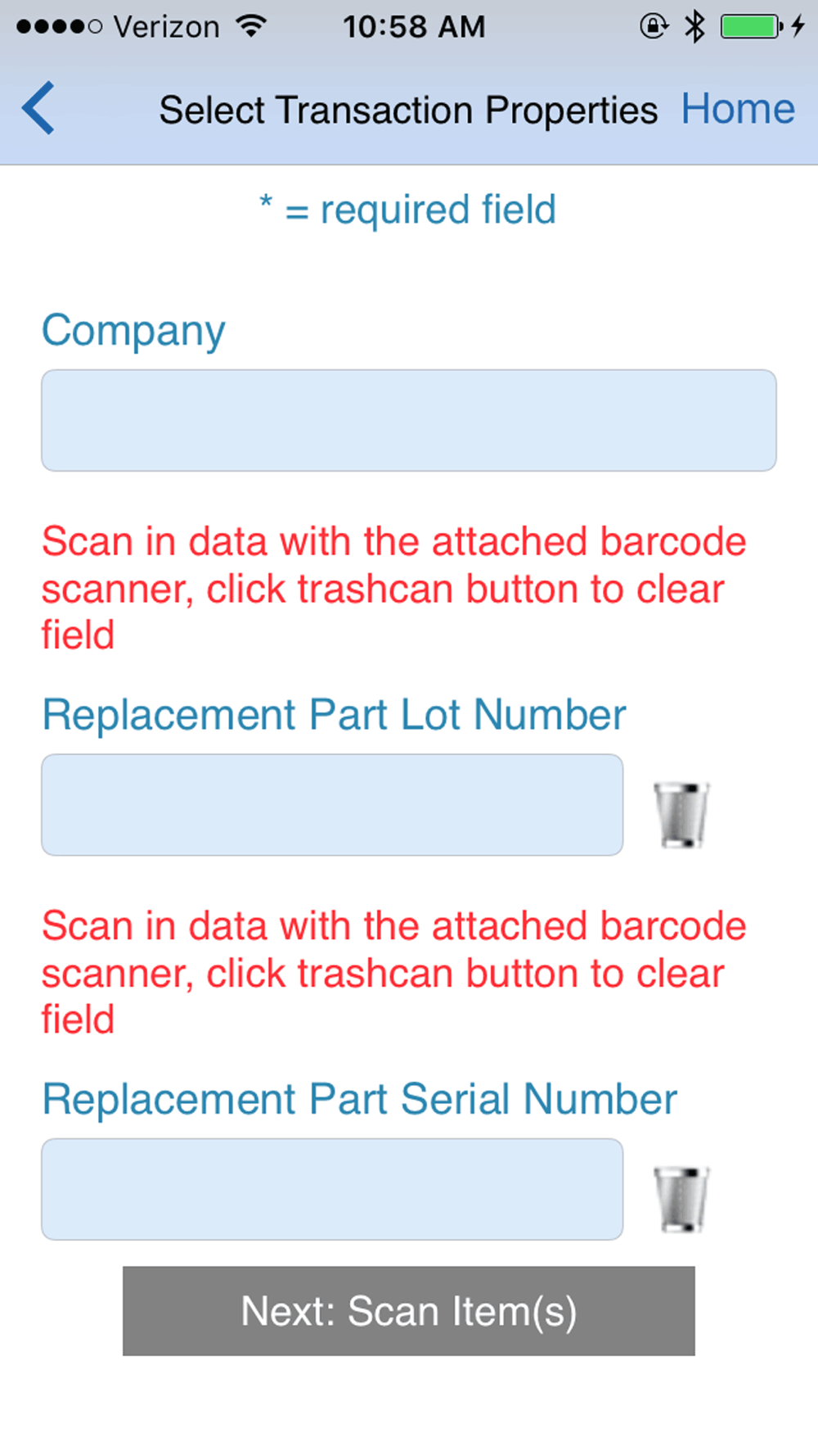 * filling out mobile forms to accompany inventory transaction, if necessary