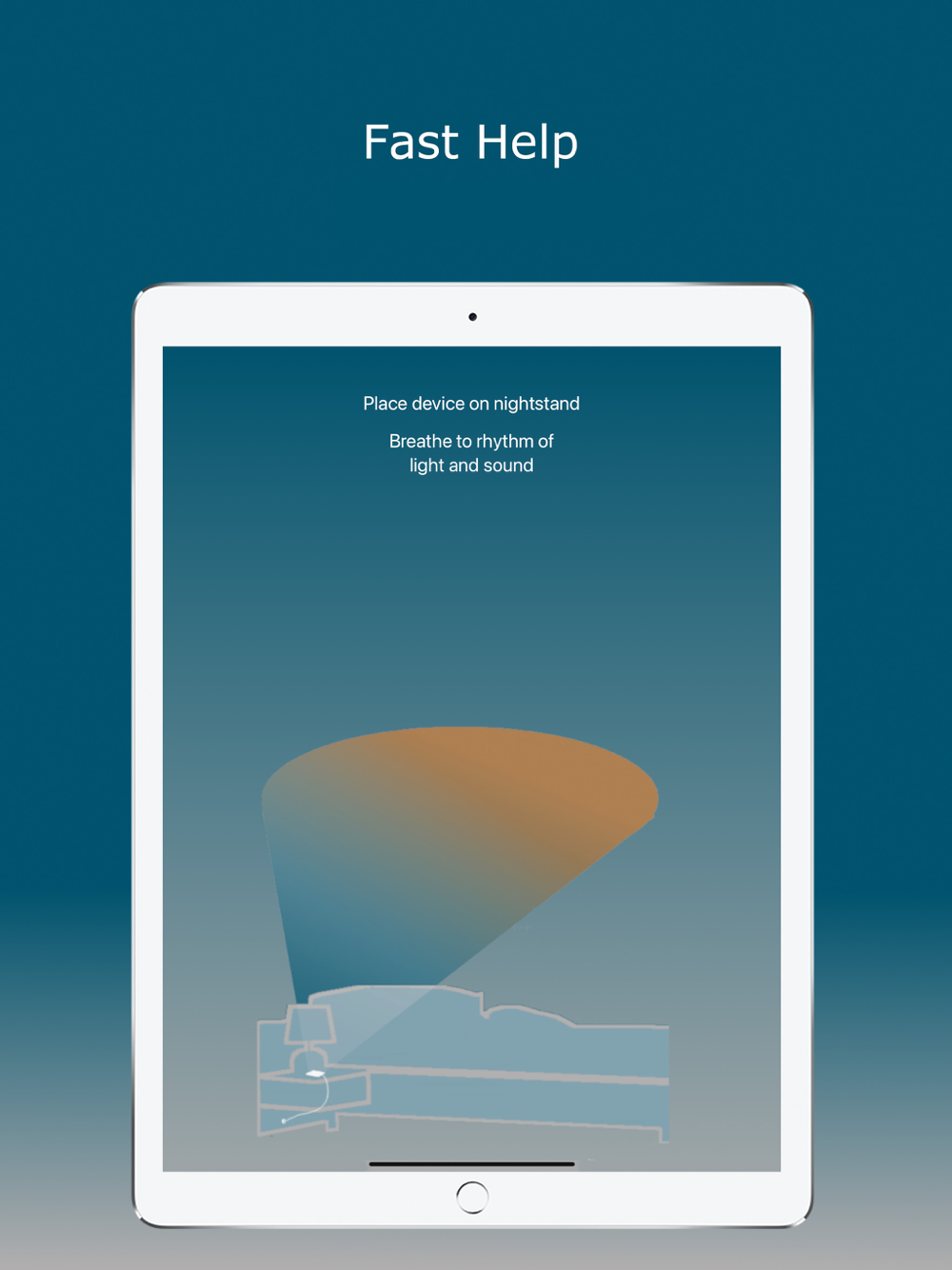 A slow and steady breathing frequency is the key to find sleep. Scientific studies show that the normal frequency for an adult is between 12-18 breathings per minute when resting. To relax and find sleep the best breathing rate is between 11 and 14. Two seconds inhaling and three seconds exhaling is the optimum for most people. Our app uses the iPhone/iPad display to project a smooth, pulsing light at your ceiling. The light is pulsing at your optimal breathing frequency so you can easily adjust your breathing rate. Most people find to sleep after a few minutes using this breathing technic. Trained people only need about 60 seconds to find sleep. We use a sunset like color for the pulsing light which additionally supports your brain to find sleep.