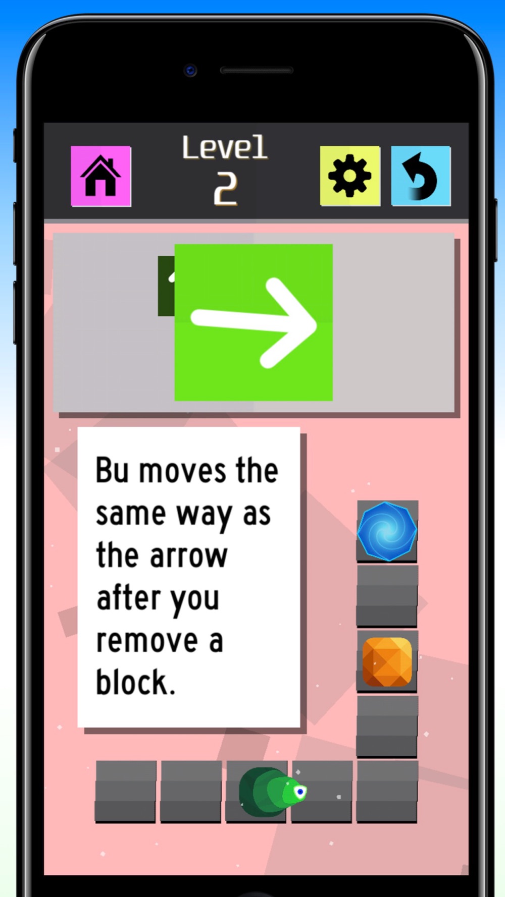 To play this unique game you will need to get Bu the Blob around the board by following the arrows. Every time you remove a block, Bu will move the direction of the next arrow. There are different kinds of blocks - spiky, bouncy and slidy. This makes the puzzler, because you need to think about the right block to remove at the right time. And to make things more fun, there are teleports. Who doesn’t love moving through teleports?