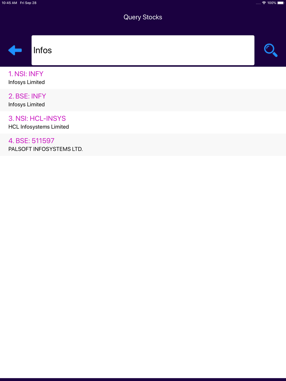This app brings you stock quotes and synchronizes with finance data from web server, allows quick access to stick quotes, and lets you view the latest market and company news. It is a very useful and friendly for tracking all stocks from National Stock Exchange of India(NSE) and Bombay Stock Exchange(BOM).