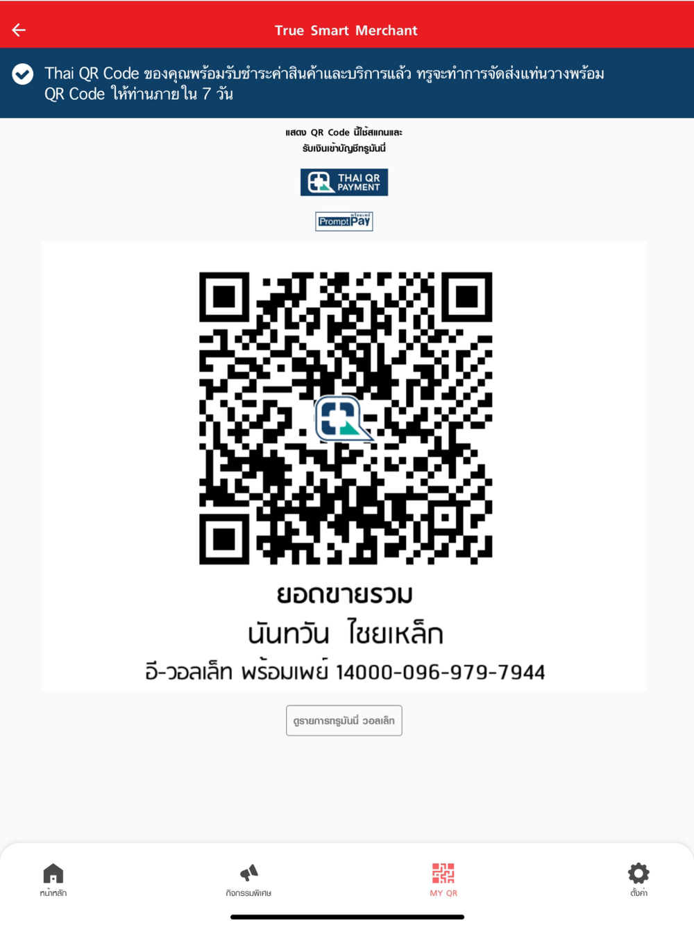 - Be a part of cashless society securely with TrueMoney Wallet which free merchants from cash handling