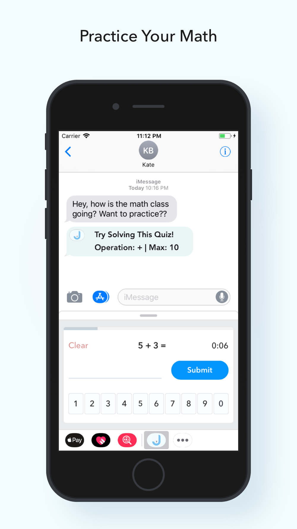 Practice your math on the go and challenge your friends! Inspired by a mentor-mentee relationship, Just In Time: Math is a simple math quiz that allows you take quick, five-question math quizzes and share your results. This application is particularly designed to be used between parents and kids as a quick way for parents to check in on their child’s progress.