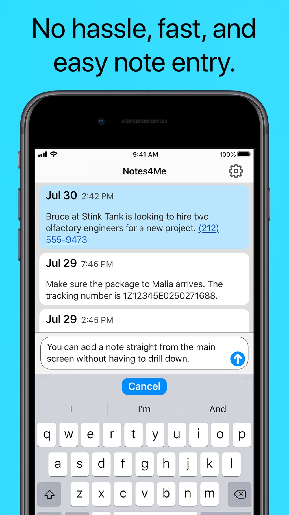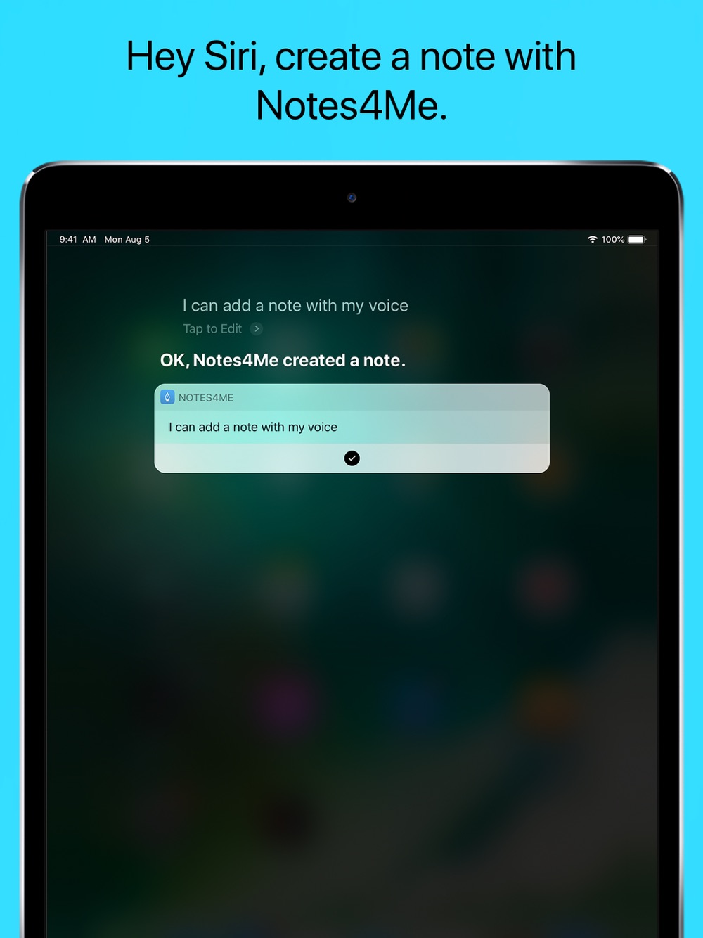 • Add notes to Notes4Me using Siri by saying, "Hey Siri, create a note with Notes4Me..."