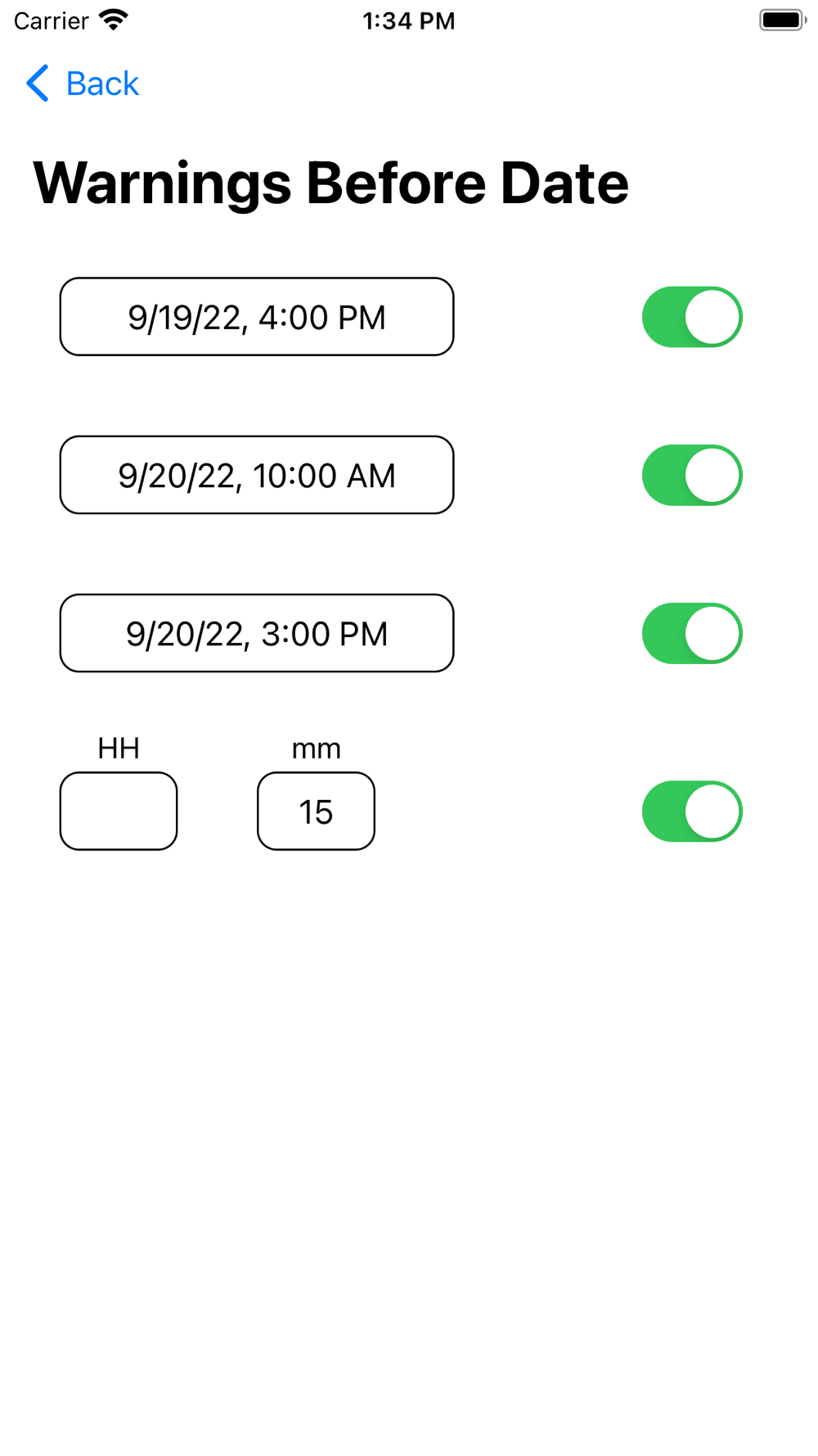 In addition to warning at the desired date and time, RemBefore can notify the day before, six hours before, or until an hour before the event. In addition to the predefined times, you can also determine another one of your choice.