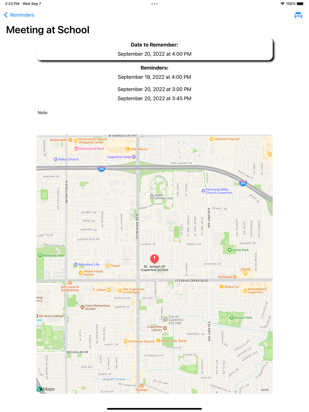 With RemBefore you can set the location of the event, and later see the route to it, as well as its duration.