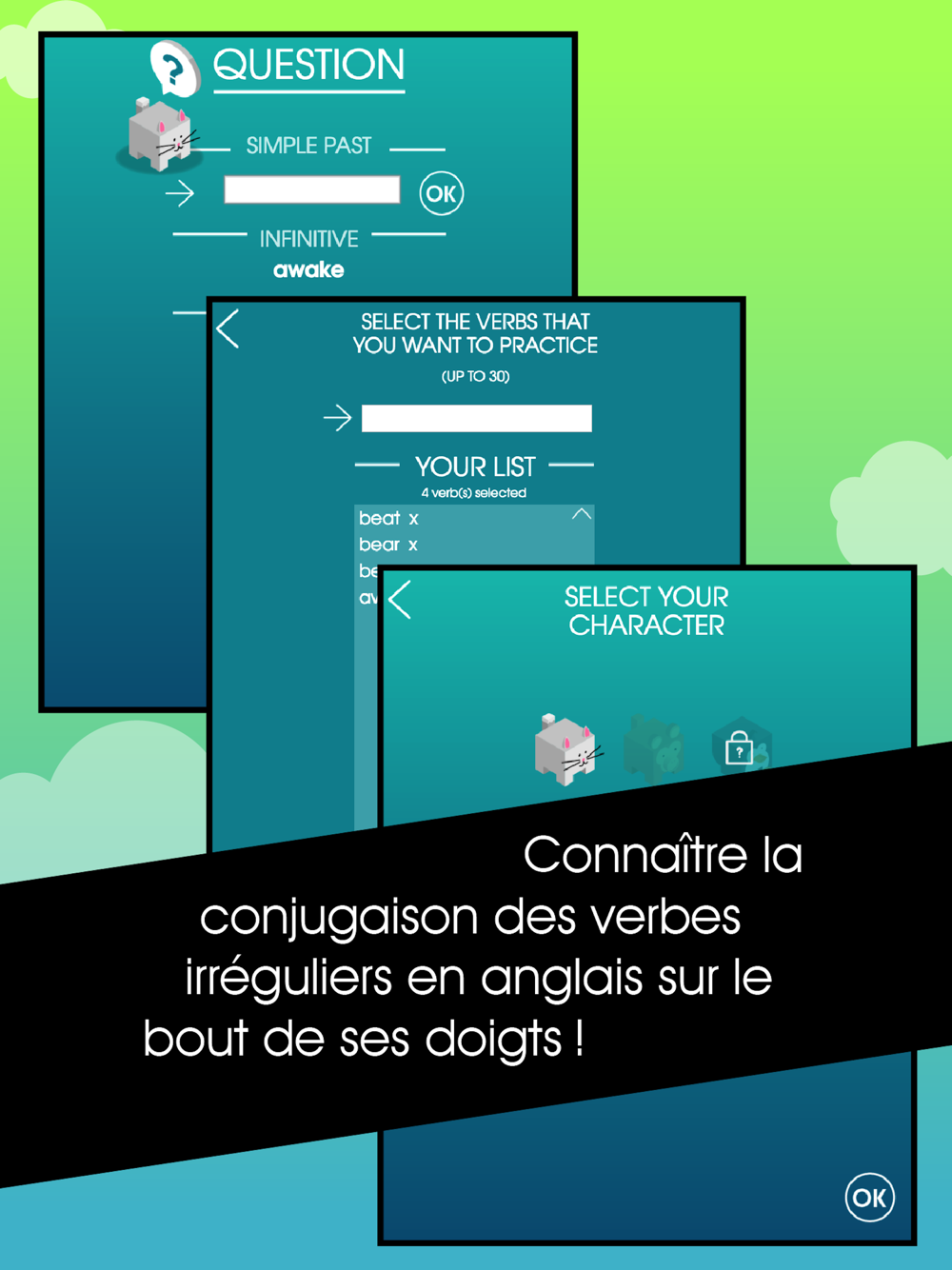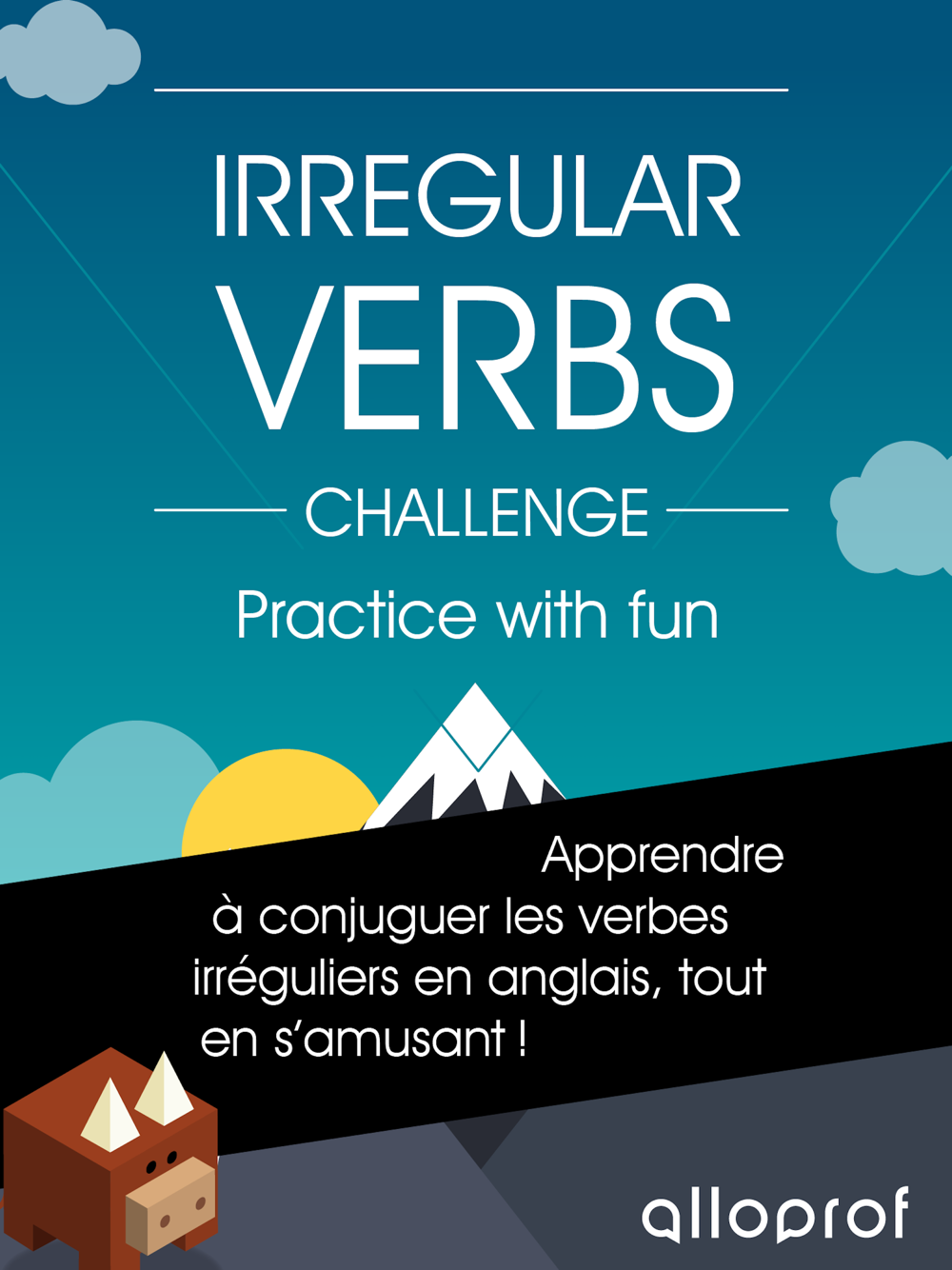 Connaître la conjugaison des verbes irréguliers en anglais sur le bout de ses doigts devient un jeu d’enfant avec l’application gratuite Irregular Verbs Challenge d’Alloprof! L’application pratique invite le joueur à choisir un animal rigolo et à le faire passer à travers un parcours à obstacles mélangeant habiletés de jeu et conjugaison en anglais. Ce jeu éducatif est tant destiné aux élèves du primaire que du secondaire.