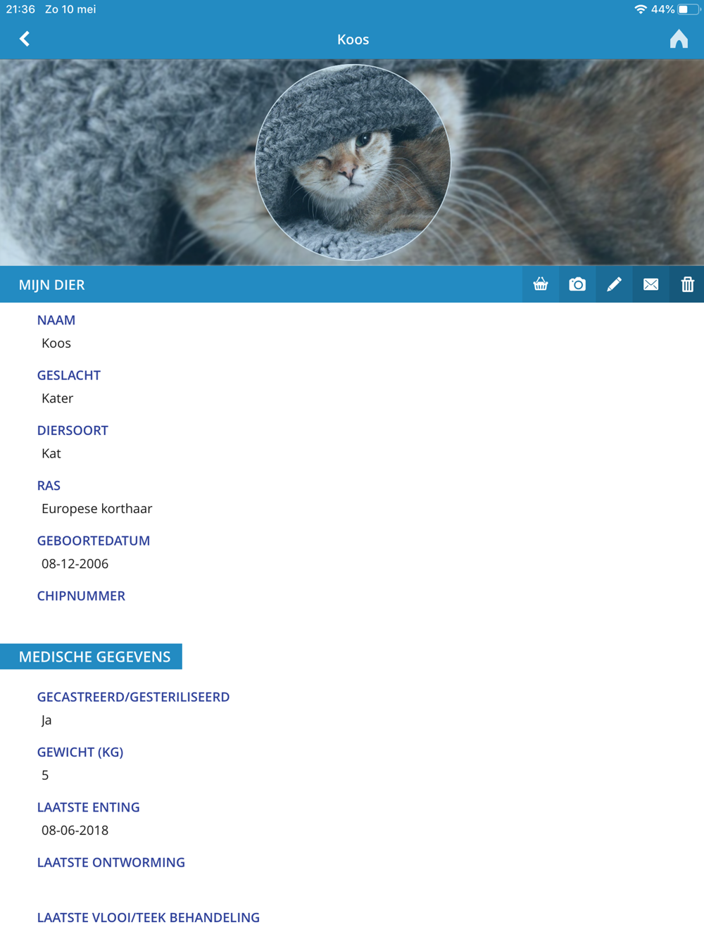 Met deze app kunt u alle gegevens van uw huisdieren op één plek overzichtelijk bijhouden. De mogelijkheden in de app zijn: