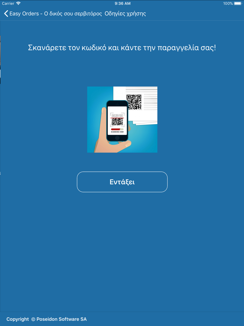 H Easy Orders είναι μια εφαρμογη όπου οι πελάτες ενός εστιατορίου μπορούν να κατεβάσουν σε μια συσκευή iOS. Mόλις σκανάρουν ένα QR code που θα βρουν στο τραπέζι ή σε μια ξαπλώστρα, εμφανίζεται ο κατάλογος του καταστήματος και μπορούν να επιλέξουν προϊόντα τα οποία θα εκτυπωθούν στους εκτυπωτές του καταστήματος και θα καταχωρηθούν στην εμπορική εφαρμογή Anima – Menu με τον ίδιο τρόπο που θα λάμβανε την παραγγελία ένας σερβιτόρος.
