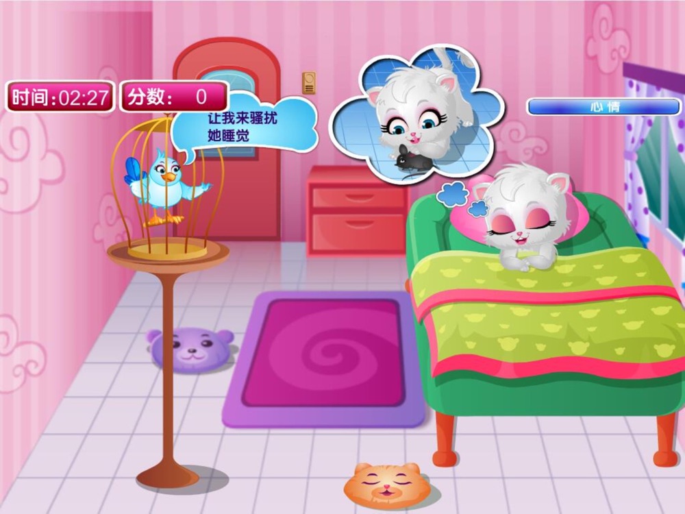 榛果宝贝非常喜欢她的养的猫咪,她的名字叫凯西。今天来让我们一起帮助榛果宝贝照顾凯西,给她一个泡泡浴。然后用服装和配饰给她打扮一番。