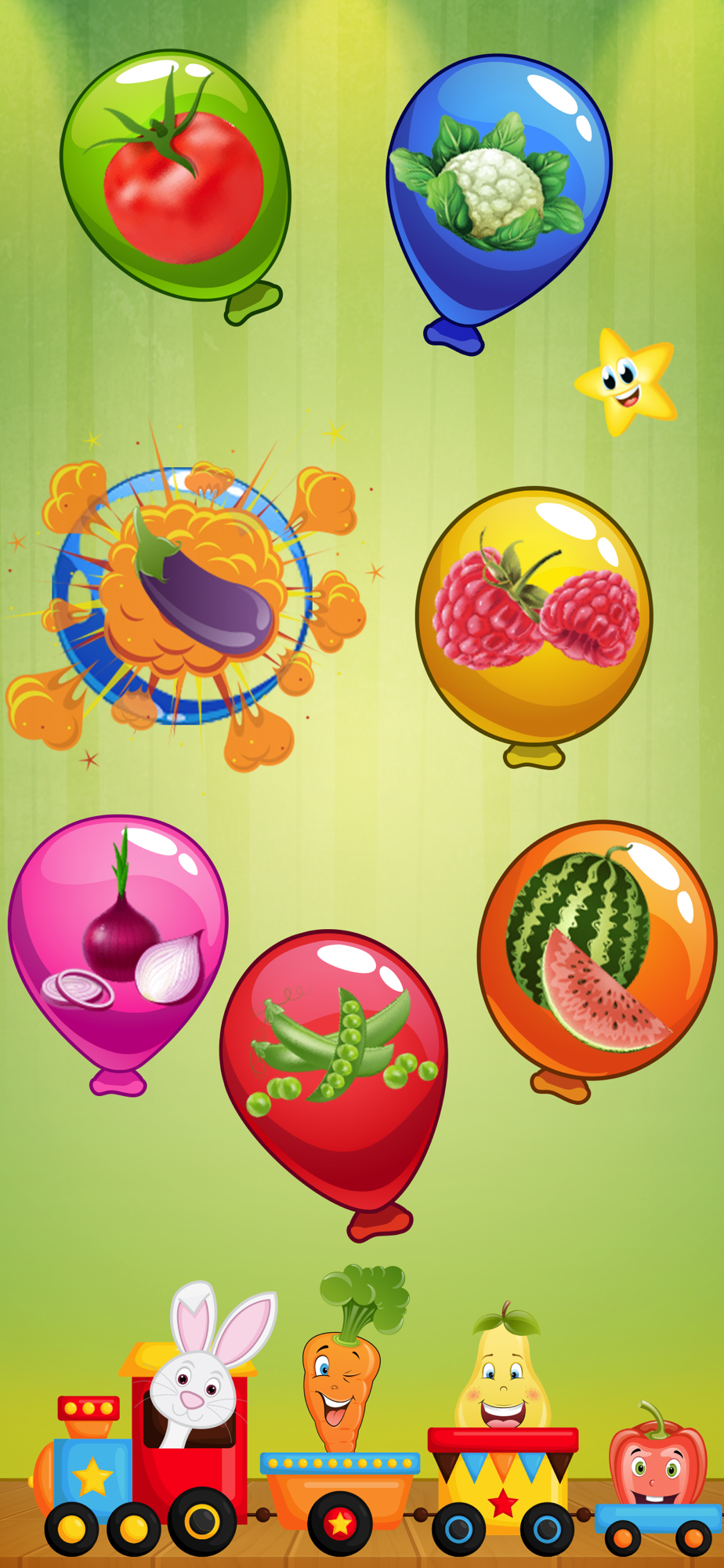 Balloon pop-pop-pop! Learn animal names and what sound each animal makes; get familiar with the fruits and vegetables that you eat; learn your alphabet letters and count the numbers. Your baby will love playing this educational balloon game, while learning new names and pronunciations. And improving his visual perception, concentration and hand-eye coordination skills at the same time.