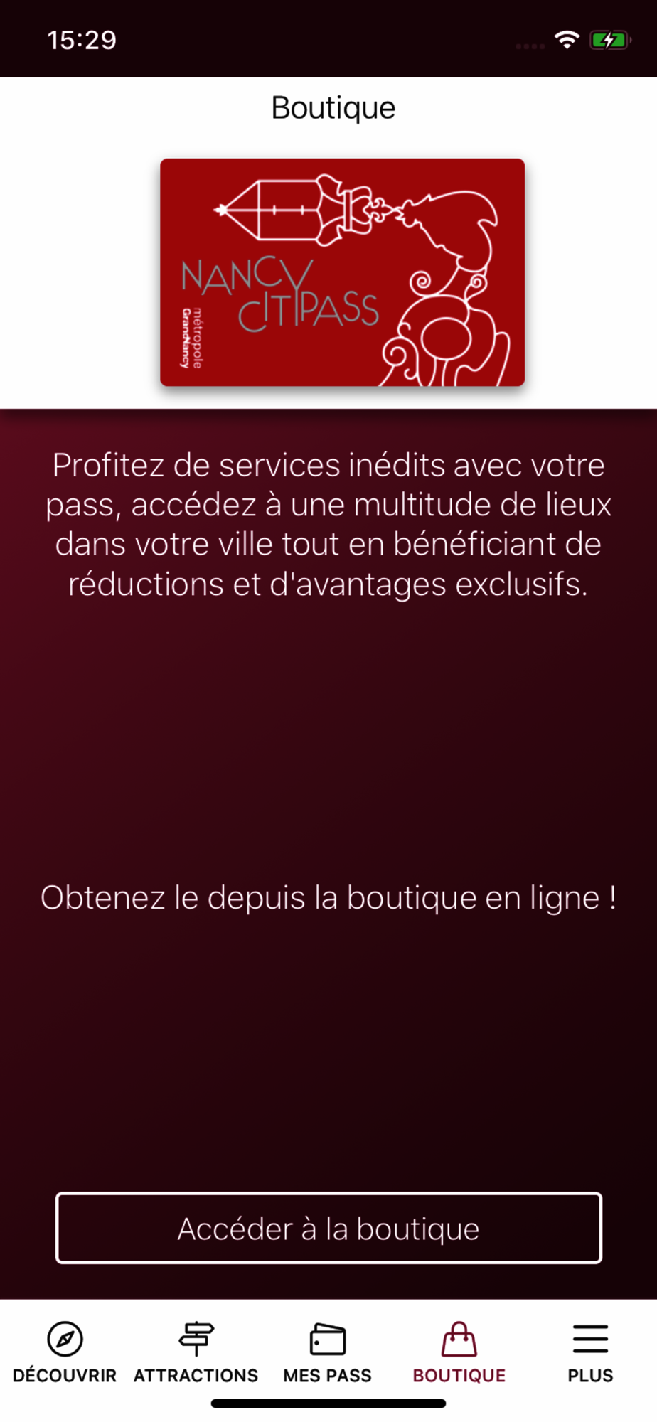 L’application Otipass Nancy permet à son utilisateur de consulter la liste des sites partenaires du Nancy City Pass même sans connexion internet, et pour chacun d’eux d’obtenir des informations détaillées : Nom, Photo(s), description, adresse postale, localisation sur la carte google Maps, horaires, lien site internet, téléphone, contact, événements liés, prestataires aux alentours. Ainsi il dispose d’un guide touristique numérique interactif pour l’accompagner pendant son séjour à Nancy.