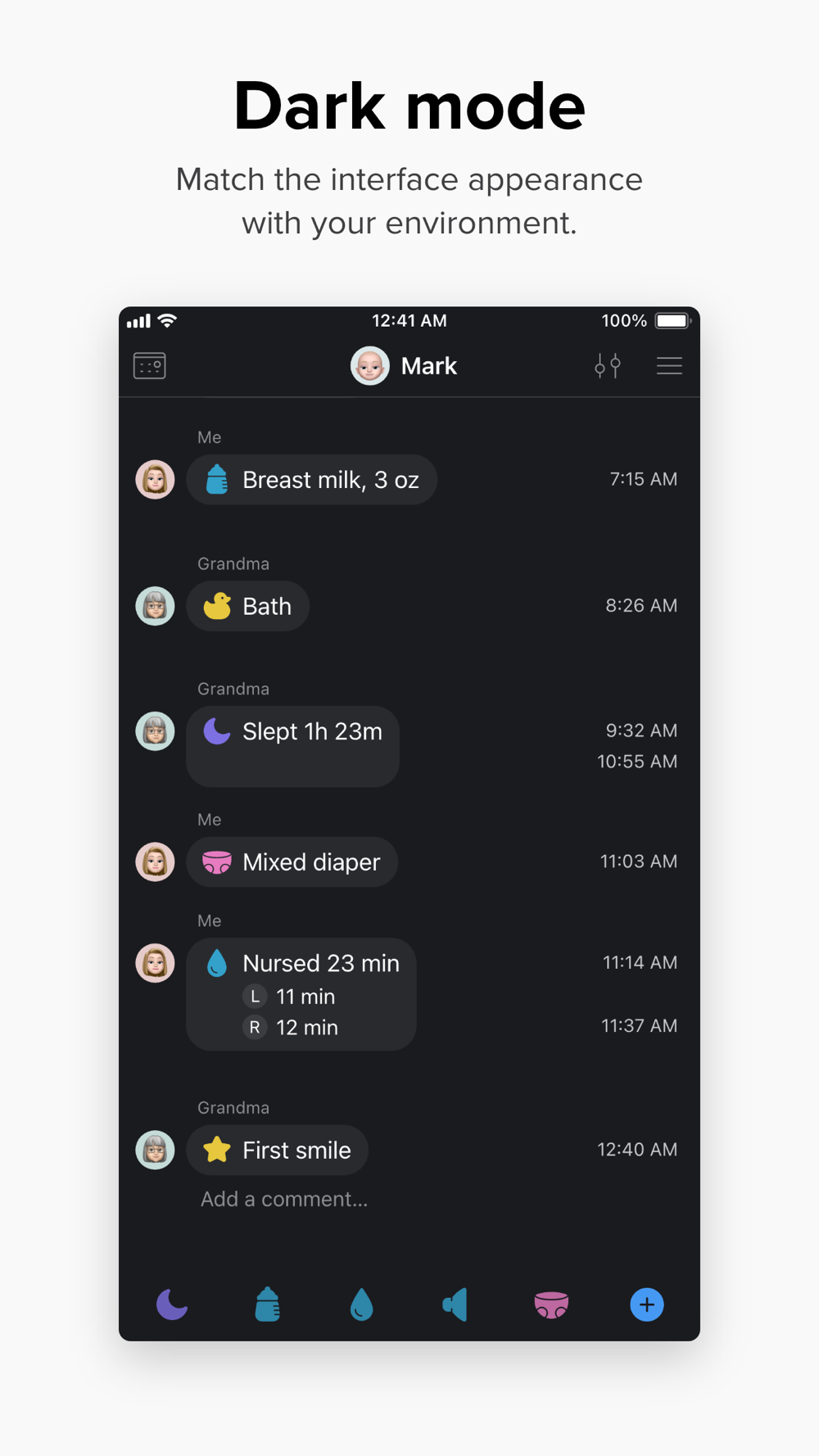 • Collaborate between caregivers: all activity is synced across devices, so you’re always up to date
