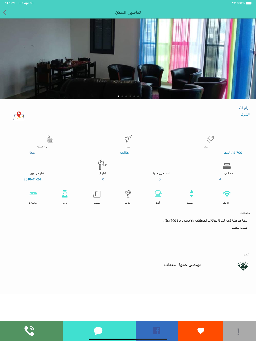 تظهر لك السكنات التي عرضها اصحابها بالخصائص التالية: