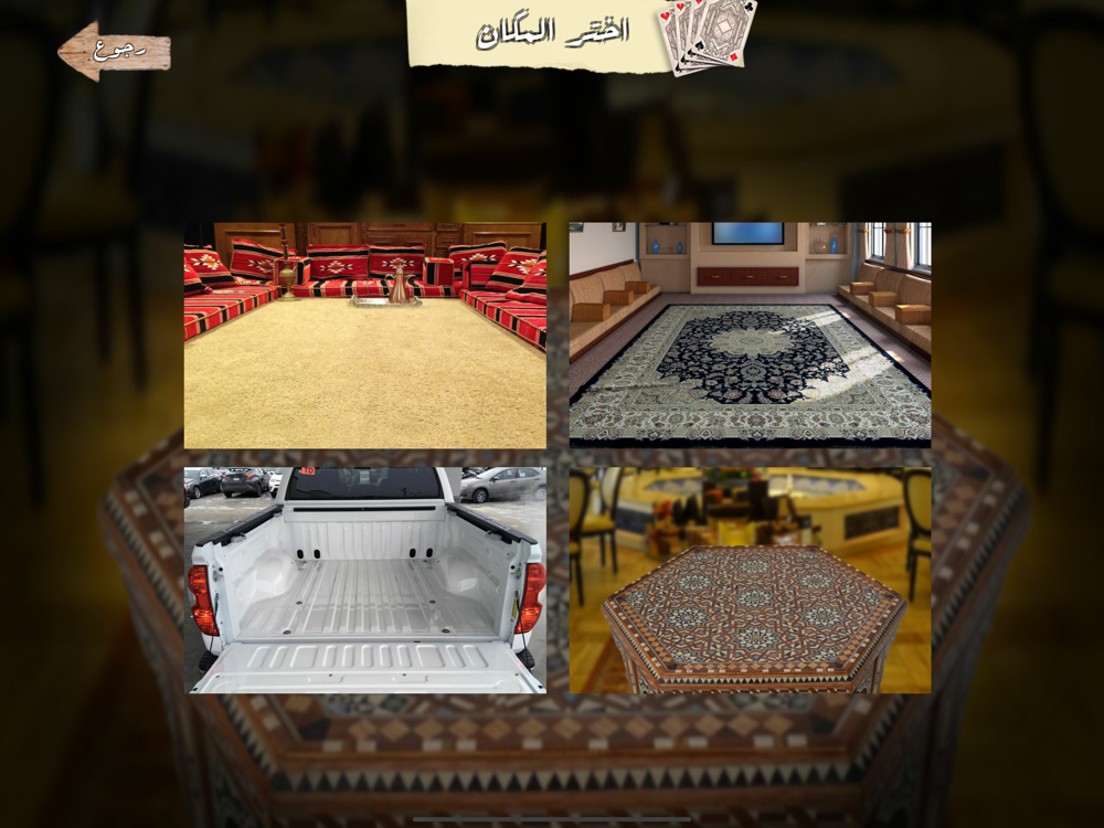 تستطيع اختيار اللعب في عدة أماكن (مجلس عربي، طاولة كوتشينة احترافية، ظهر سيارة نقل "بك أب"، غرفة جلوس)
